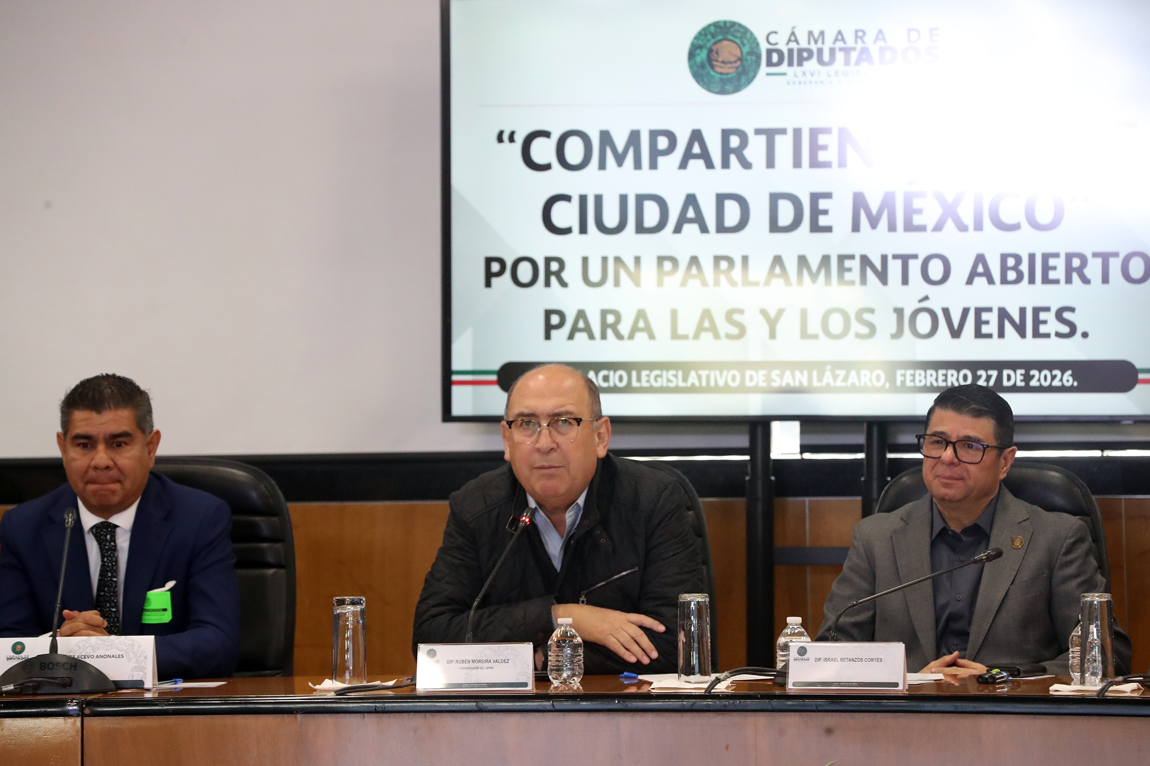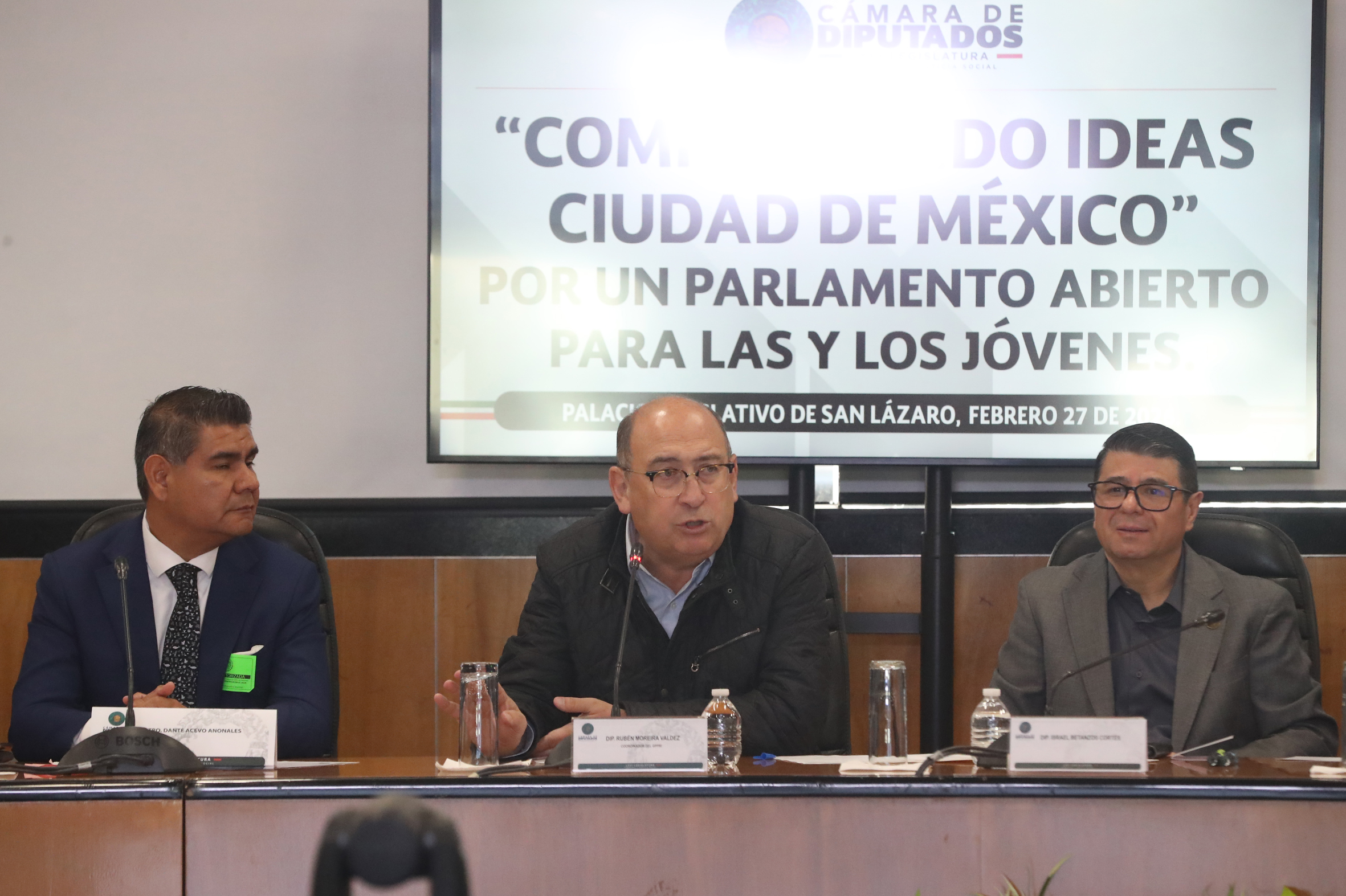 Mtro. Dante Acevo, Dip. Rubén Moreira y Dip. Israel Betanzos