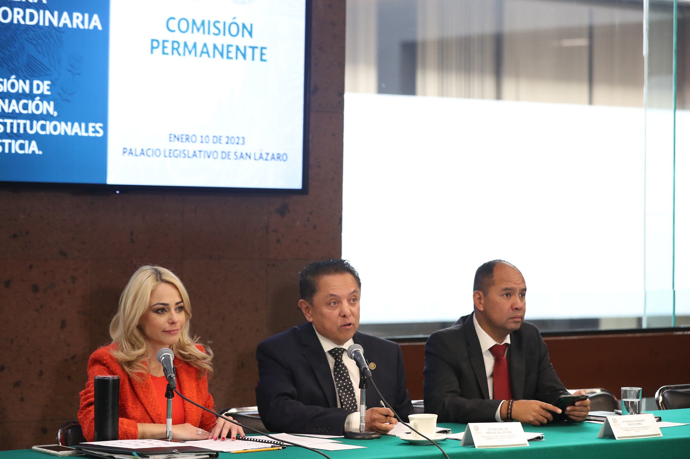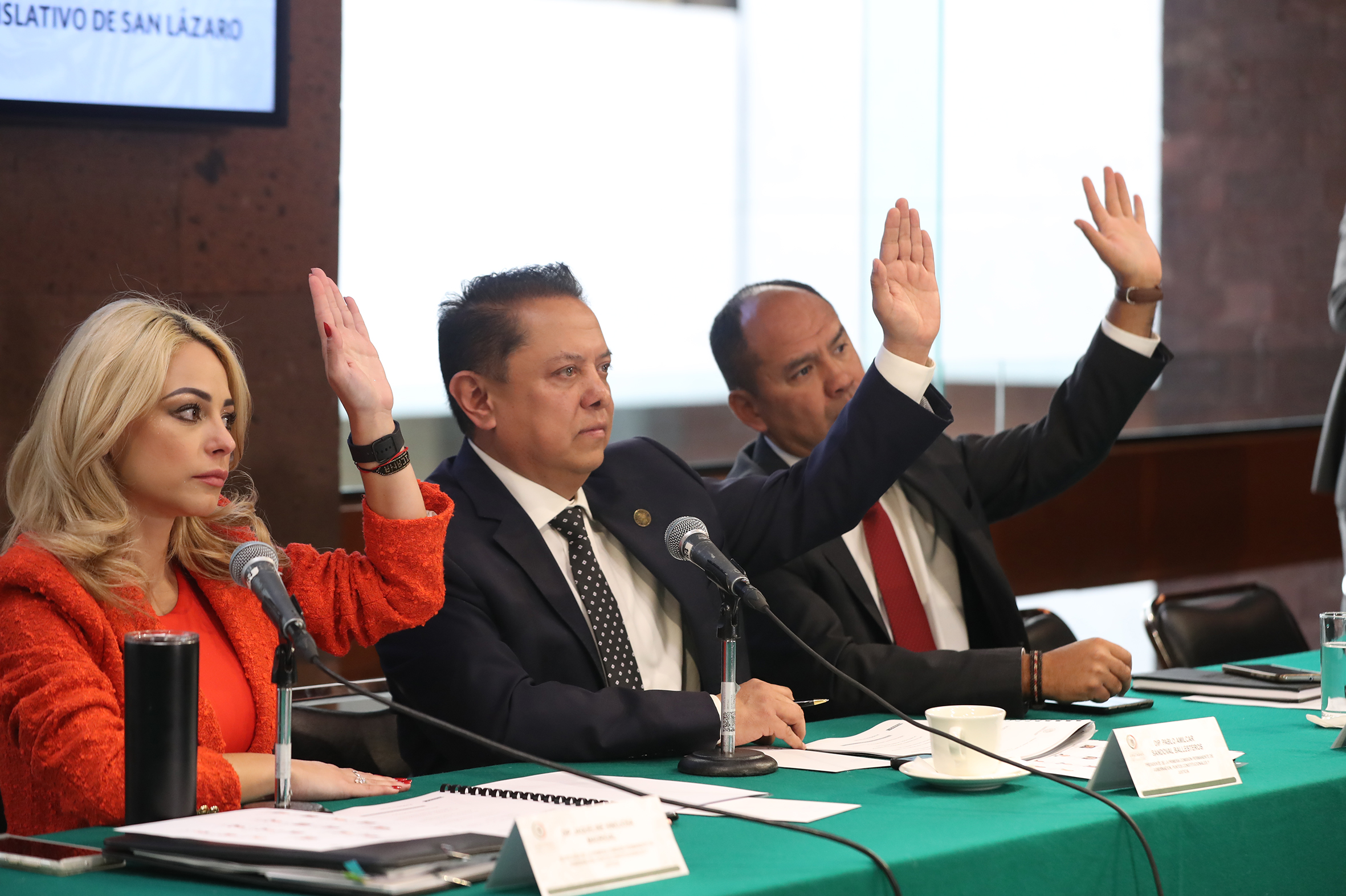 Dip. Jaqueline Hinojosa, Dip. Pablo Sandoval y Dip. Manuel Robles