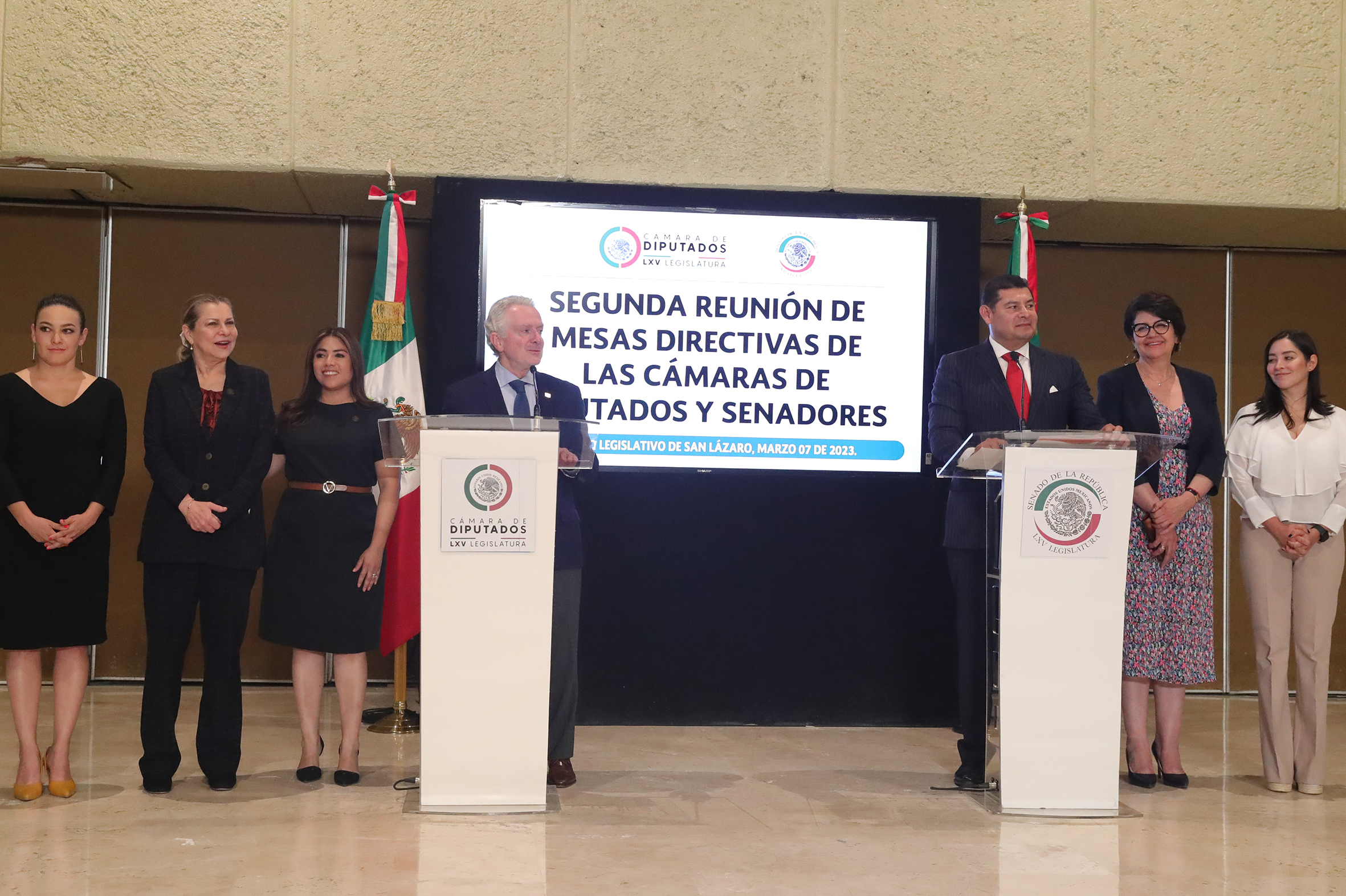 Sen. Martha Cecilia Márquez, Dip. María del Carmen Pinete, Dip. Sarai Núñez, Dip. Presidente Santiago Creel Miranda, Sen. Alejandro Armenta Mier, Dip. Magdalena del Socorro Núñez y Dip. Fuensanta Guadalupe Guerrero