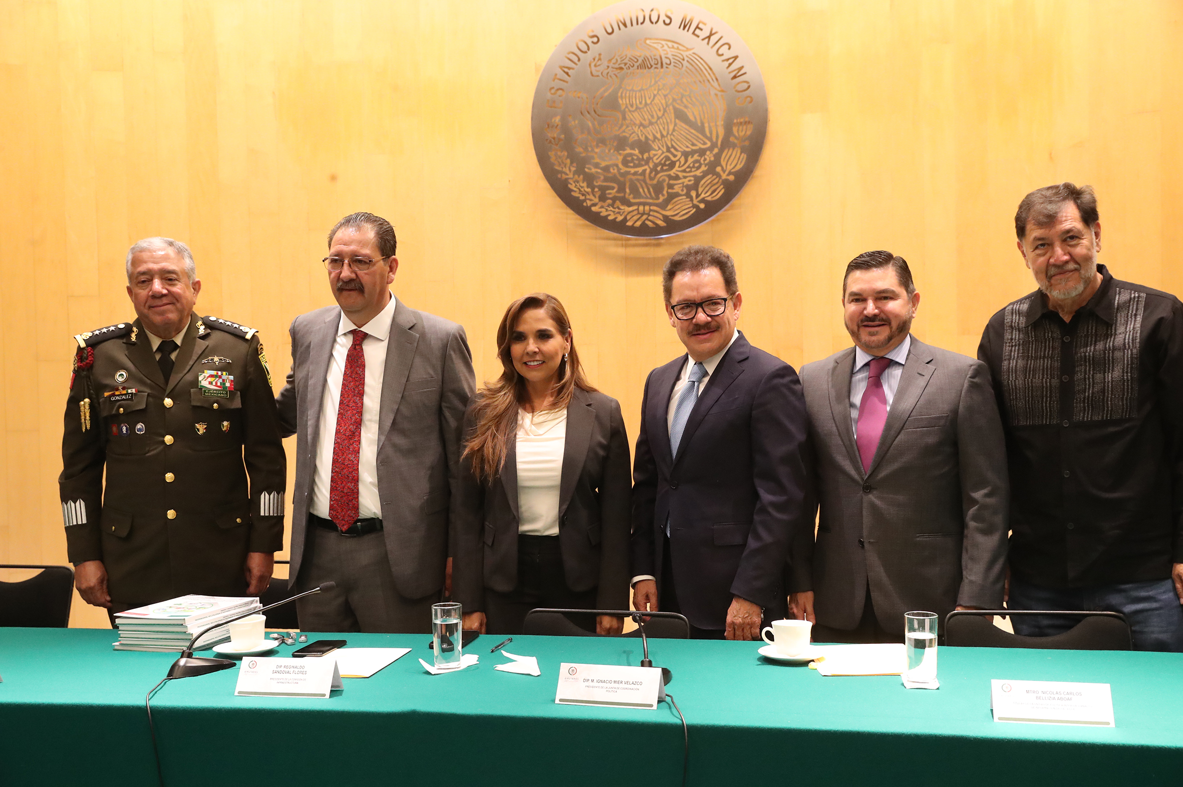 Gral. de División D.E.M. Jaime González, Dip. Reginaldo Sandoval, Lic. Mara Lezama, Dip. Moisés Ignacio Mier, Mtro. Nicolás Carlos Bellizia y Dip. Gerardo Fernández Noroña