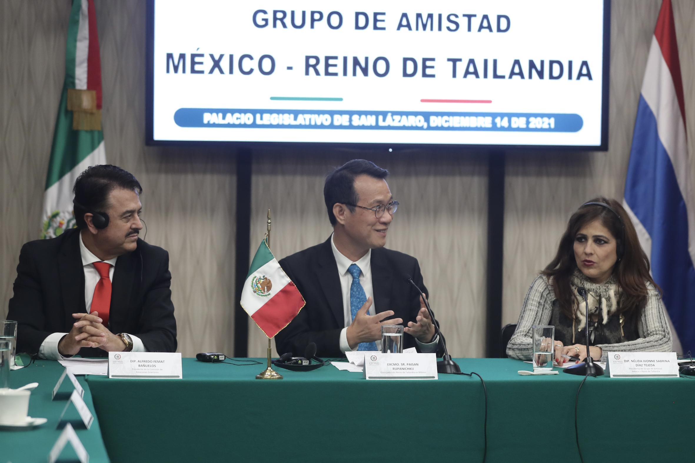 Dip. Alfredo Femat, Excmo. Sr. Paisan Rupanichkij, Dip. Nélida Díaz, Dip. Marco Mendoza