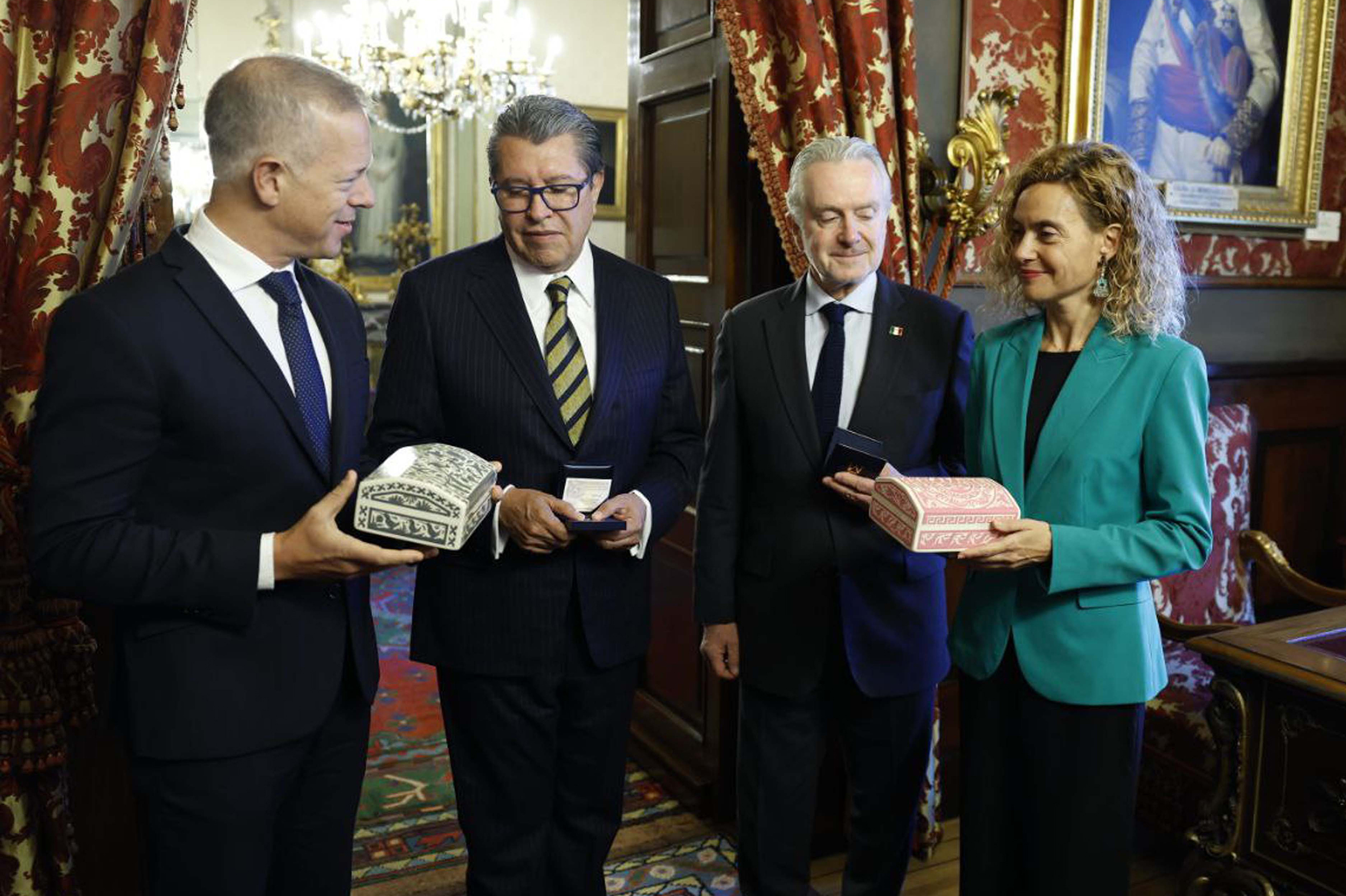 Ander Gil, presidente del Senado de España, Sen. Ricardo Monreal, Dip. Presidente Santiago Creel Miranda y Meritxell Batet, presidenta del Congreso de los Diputados de España