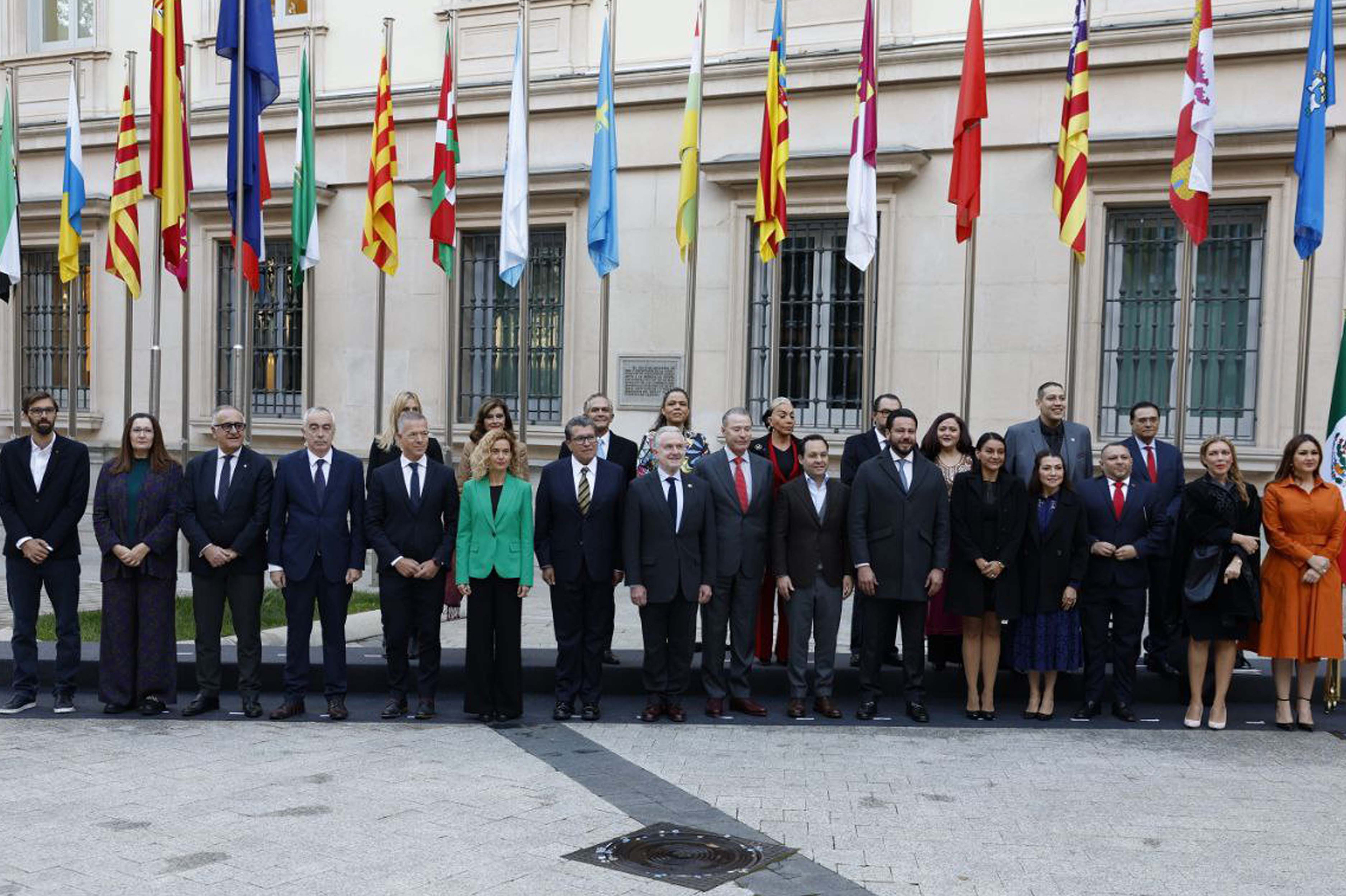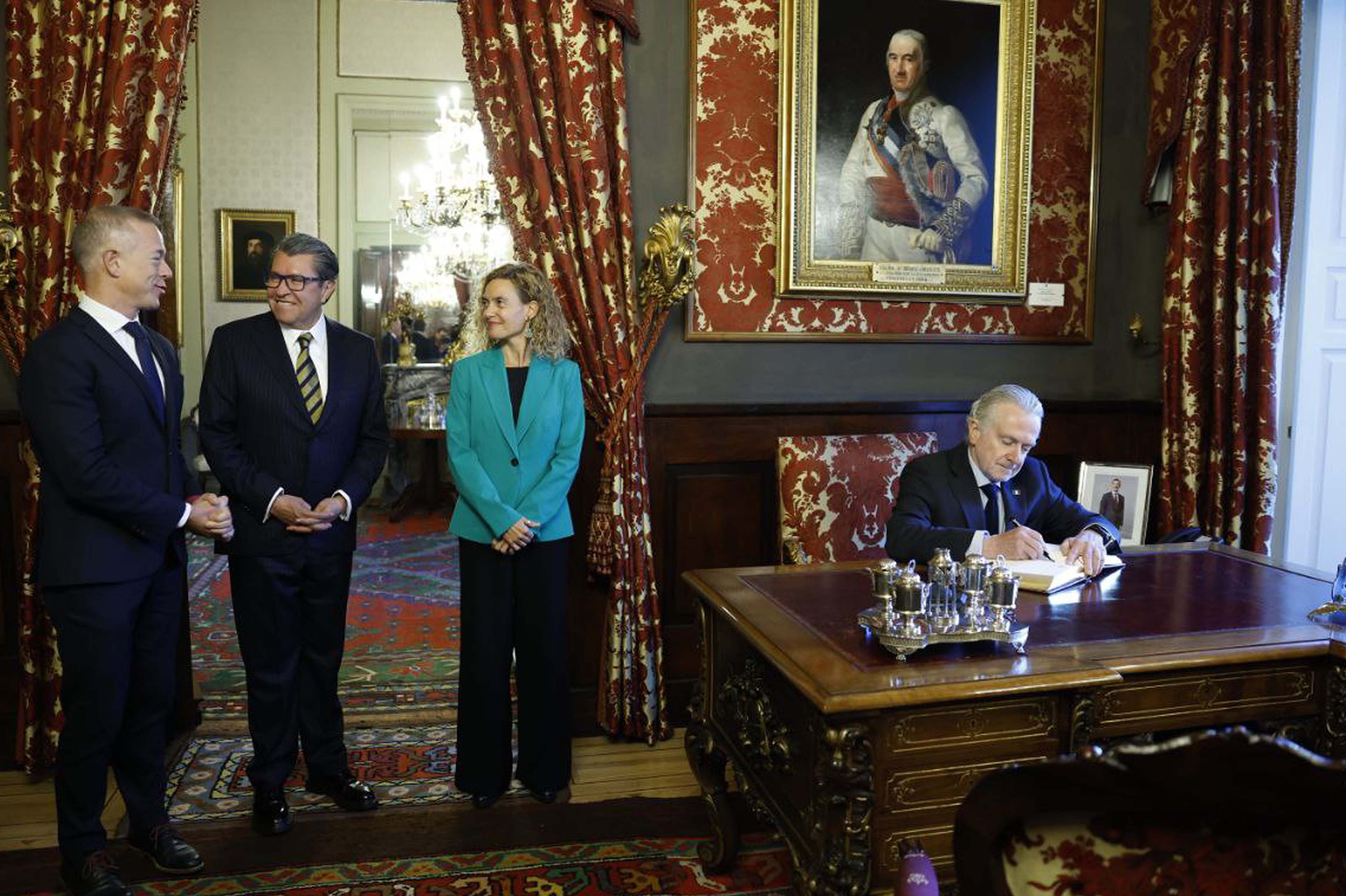 Ander Gil, presidente del Senado de España, Sen. Ricardo Monreal, Meritxell Batet, presidenta del Congreso de los Diputados de España y Dip. Presidente Santiago Creel Miranda