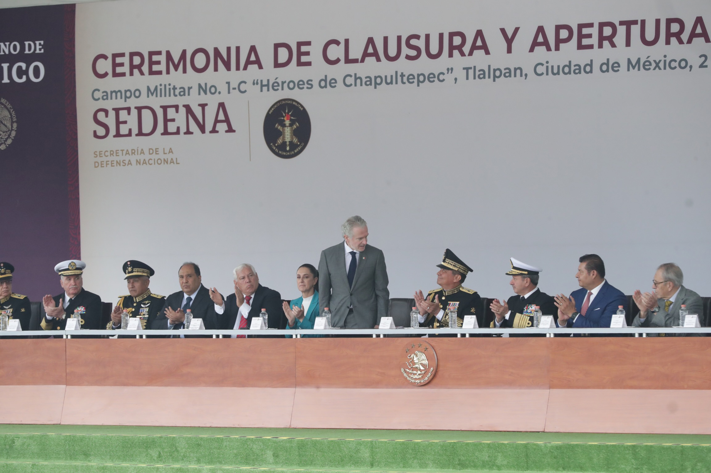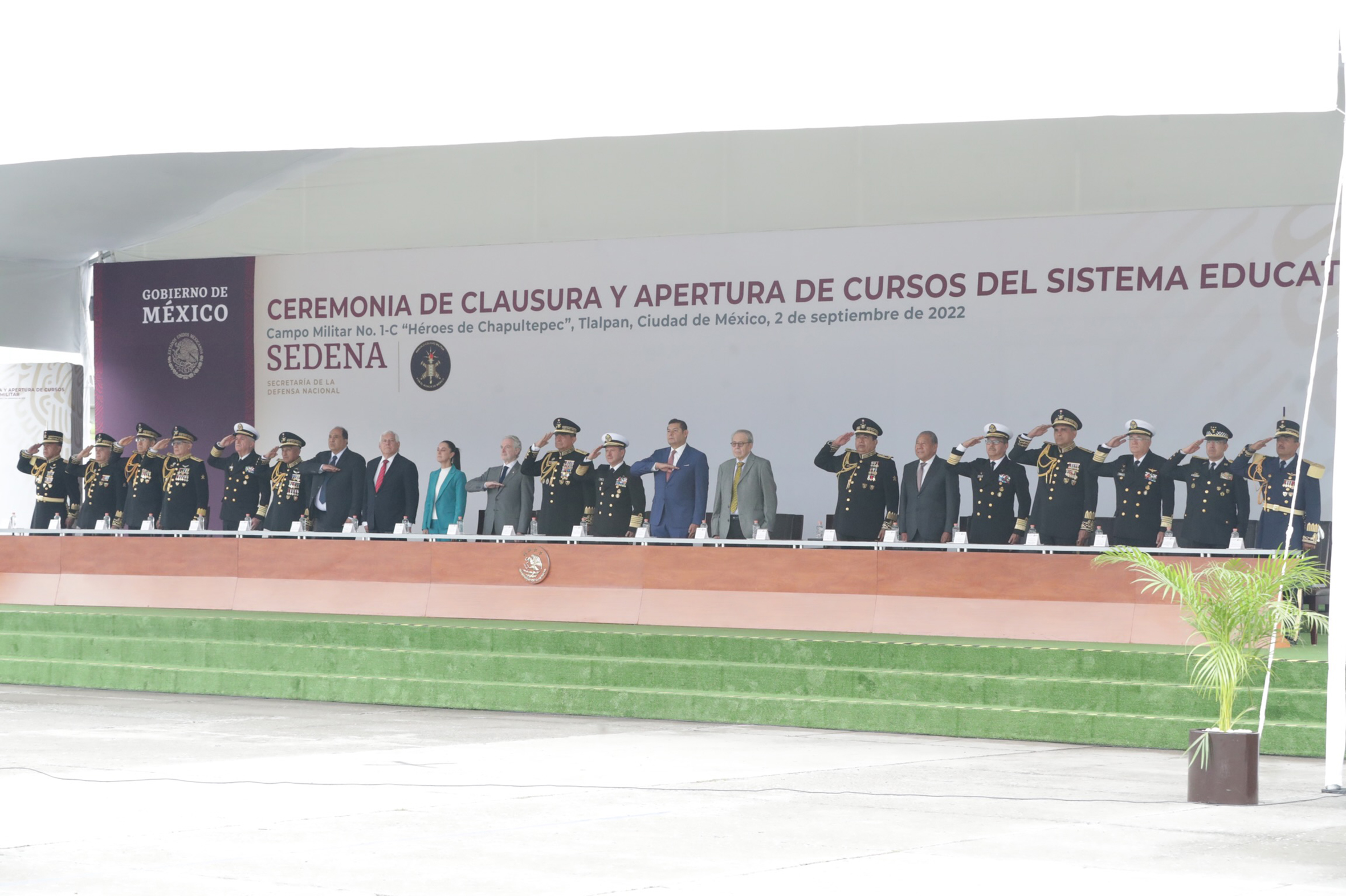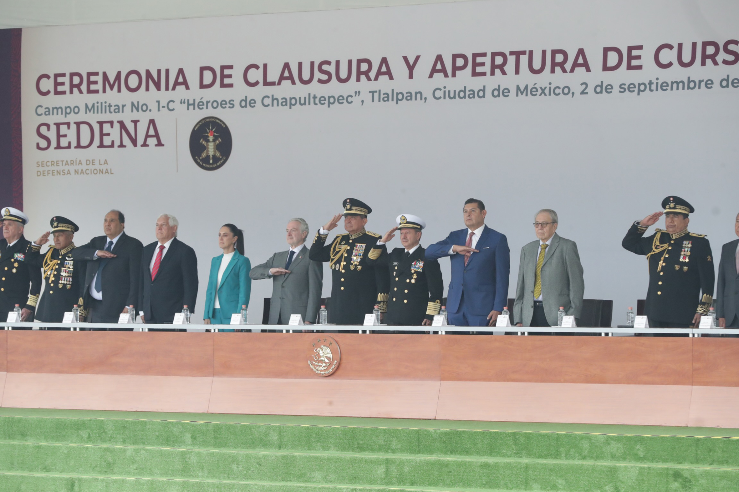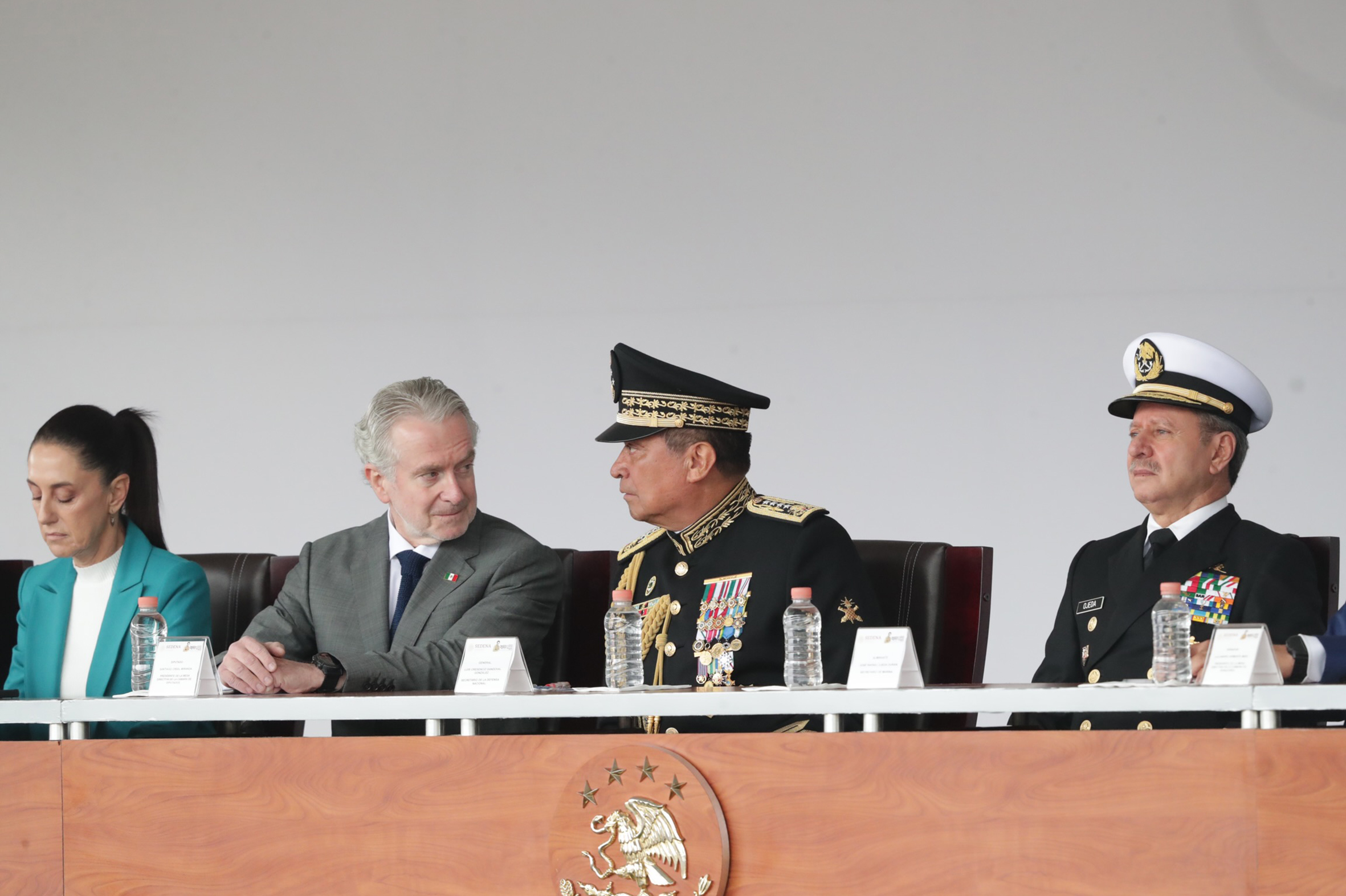 Dra. Claudia Sheimbaum, Jefa de Gobierno de la Ciudad de México; Dip. Santiago Creel Miranda, Presidente de la Mesa Directiva de la Cámara de Diputados; General Luis Cresencio Sandoval González, Secretario de la Defensa Nacional y Almirante José Rafael Ojeda Durán, Secretario de Marina