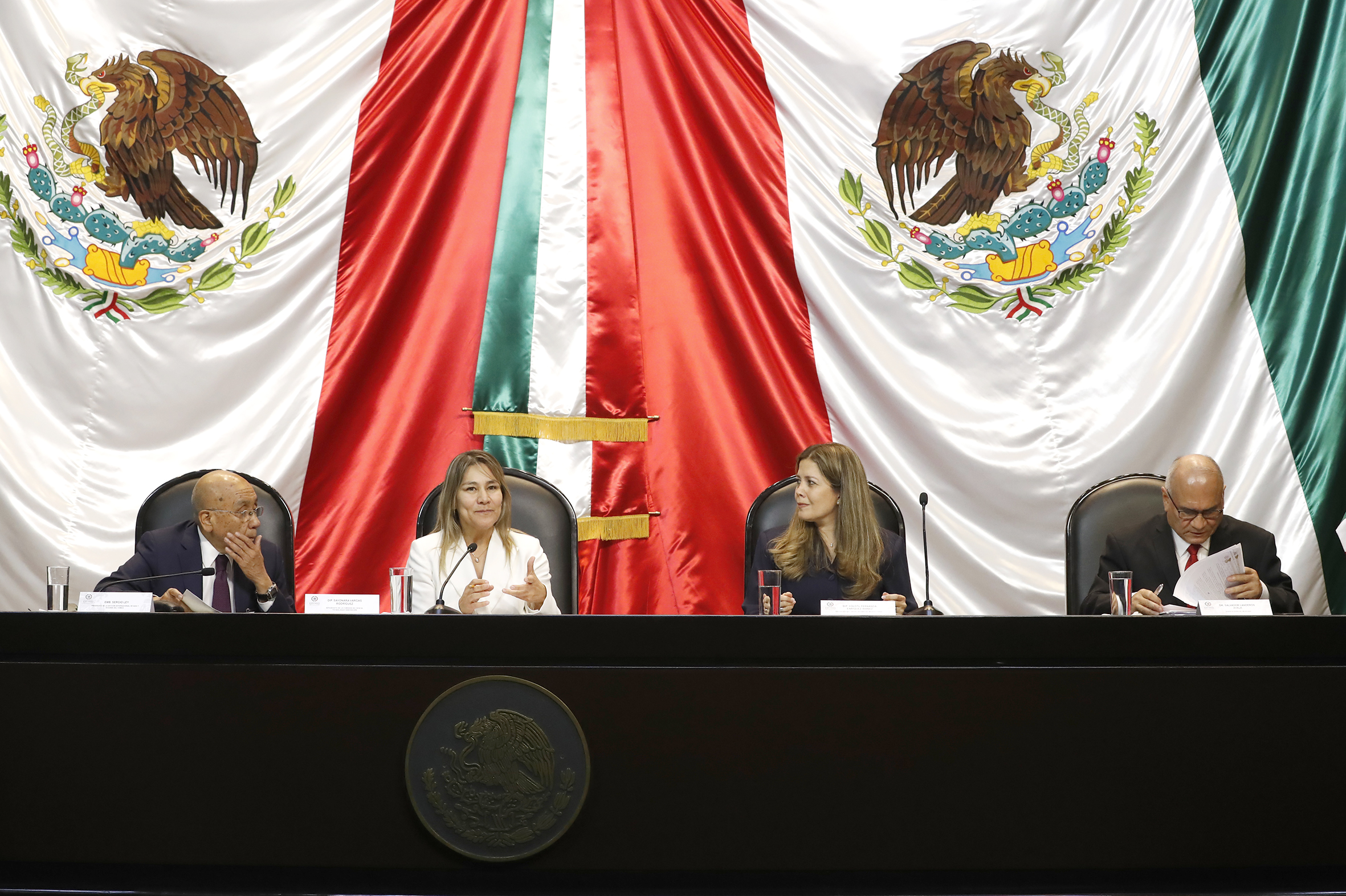 Emb. Sergio Ley, Dip. Sayonara Vargas, Dip. Yolotl Fernanda Enriquez y Dr. Salvador Landeros