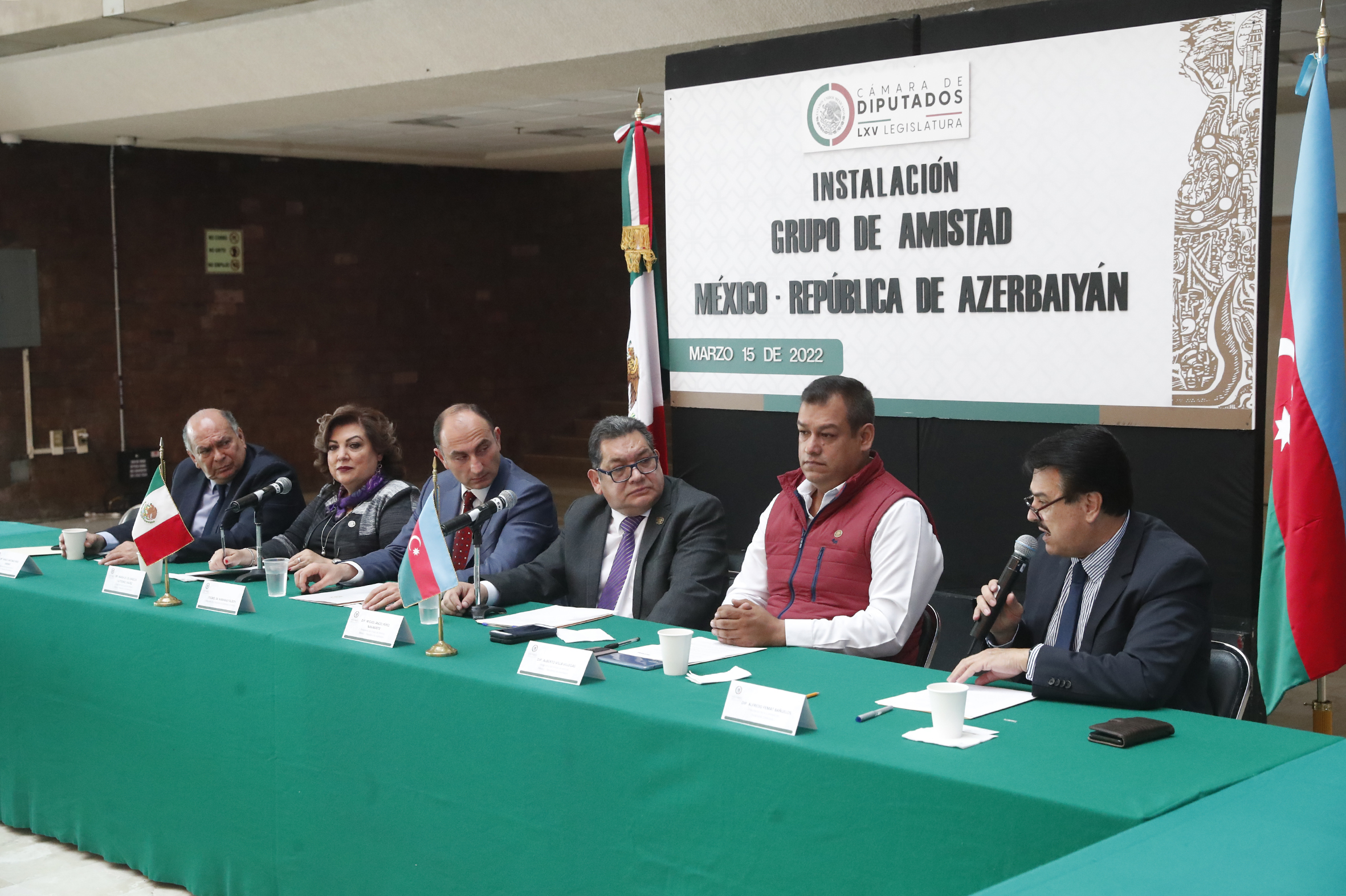 Dip. Marco Pérez, Dip. Angeles Gutiérrez, Excmo. Sr. Mammad Talibov, Dip. Miguel Pérez, Dip. Alberto Villa, Dip. Alfredo Femat y Dip. Pedro Peñaloza