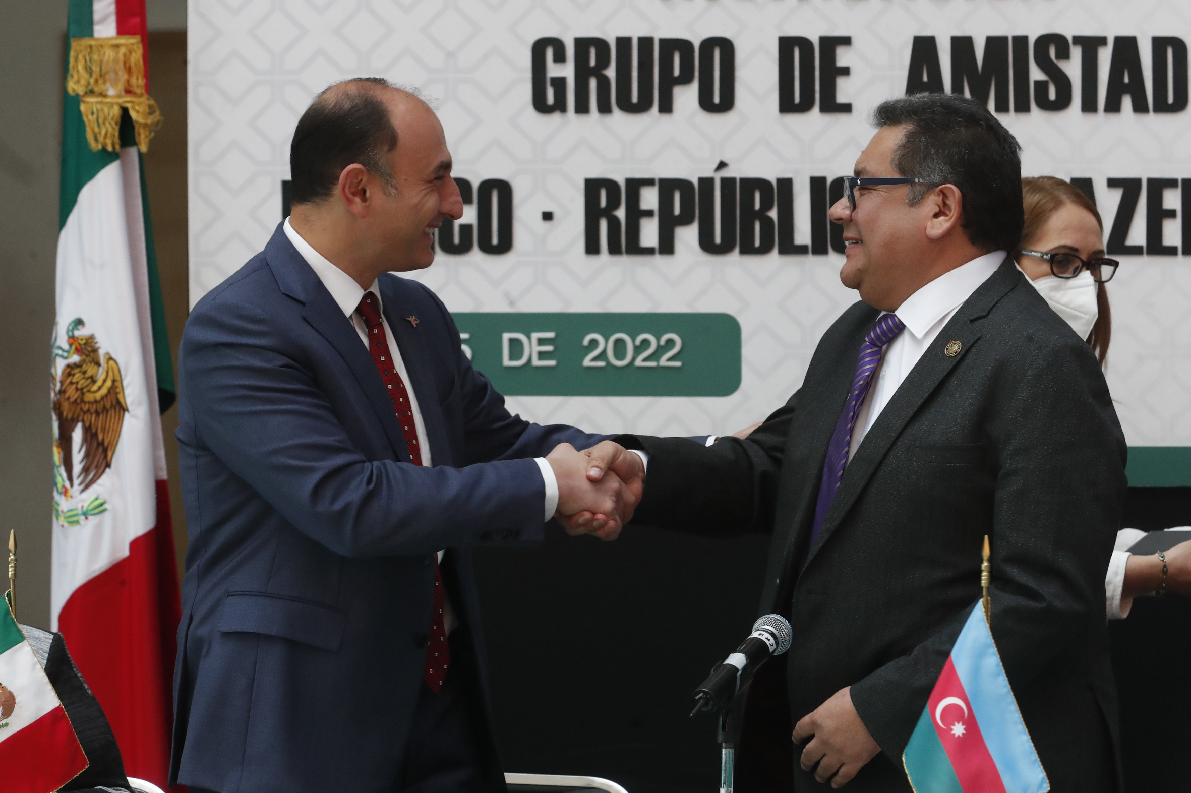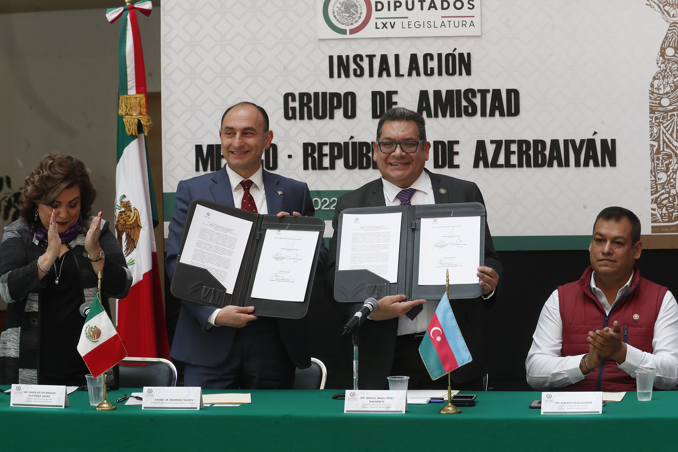 Dip. Marco Pérez, Dip. Angeles Gutiérrez, Excmo. Sr. Mammad Talibov, Dip. Miguel Pérez, Dip. Alberto Villa y Dip. Alfredo Femat
