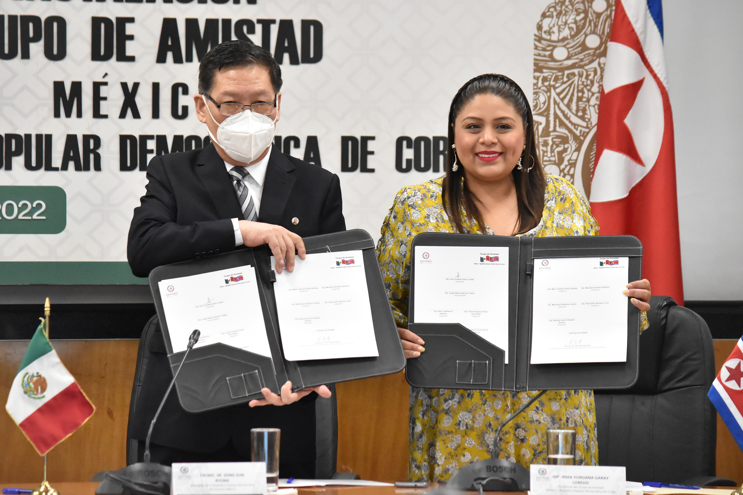 Dip. Jorge Alberto Barrera, Excmo. Sr. Song Sun Ryong y Dip. Irma Yordana Garay