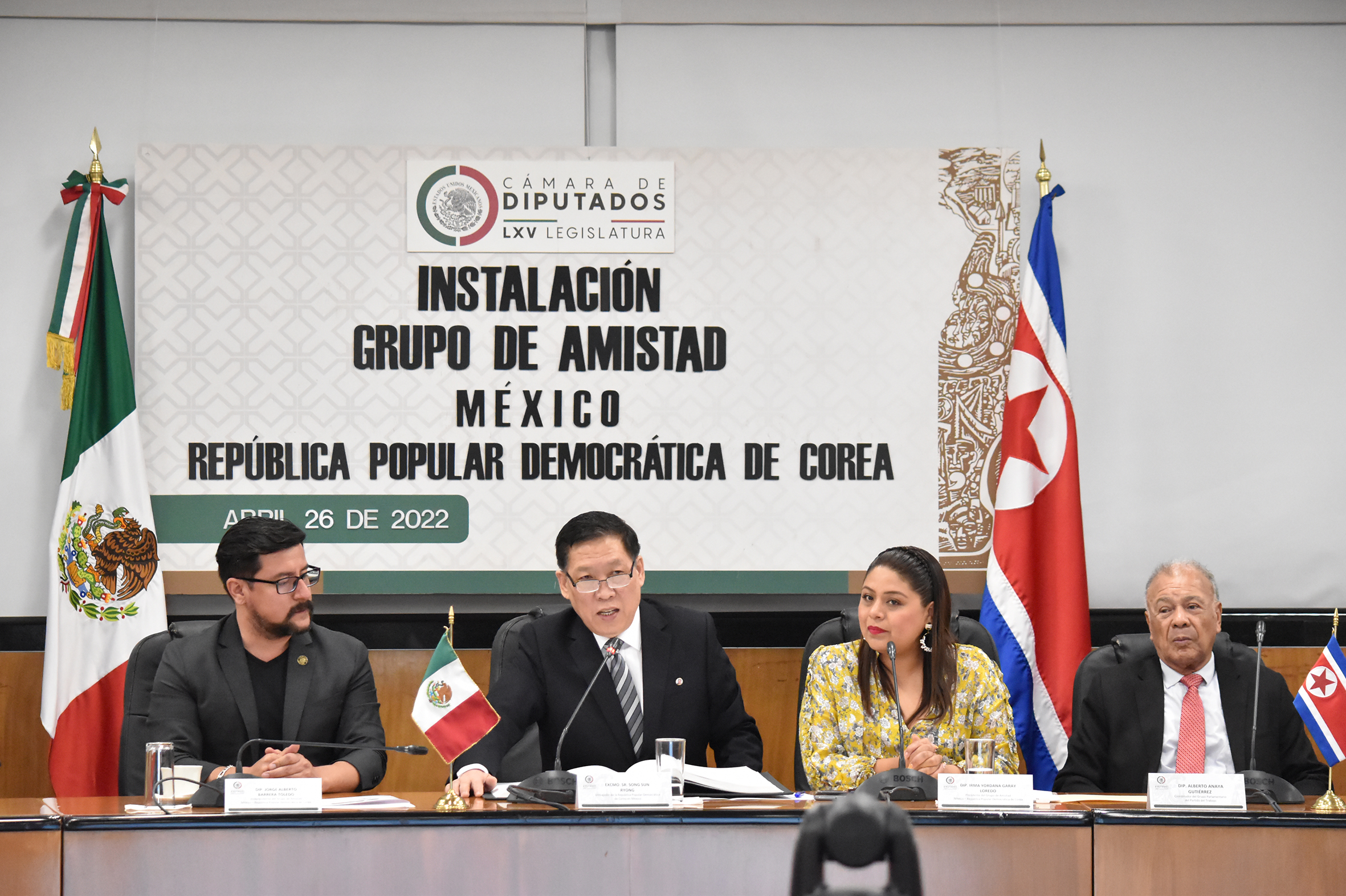 Dip. Alfredo Femat, Dip. Jorge Alberto Barrera, Excmo. Sr. Song Sun Ryong y Dip. Irma Yordana Garay