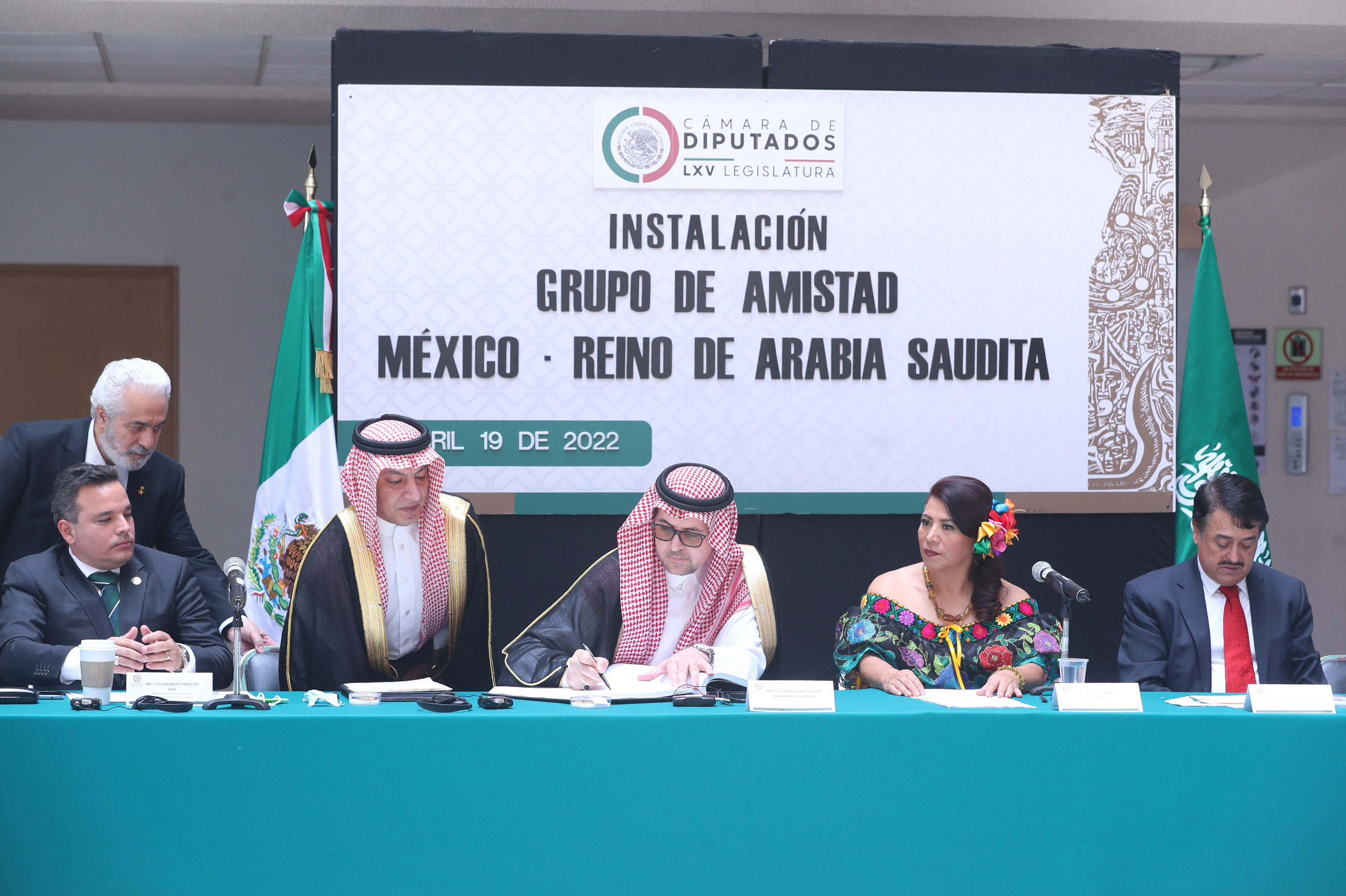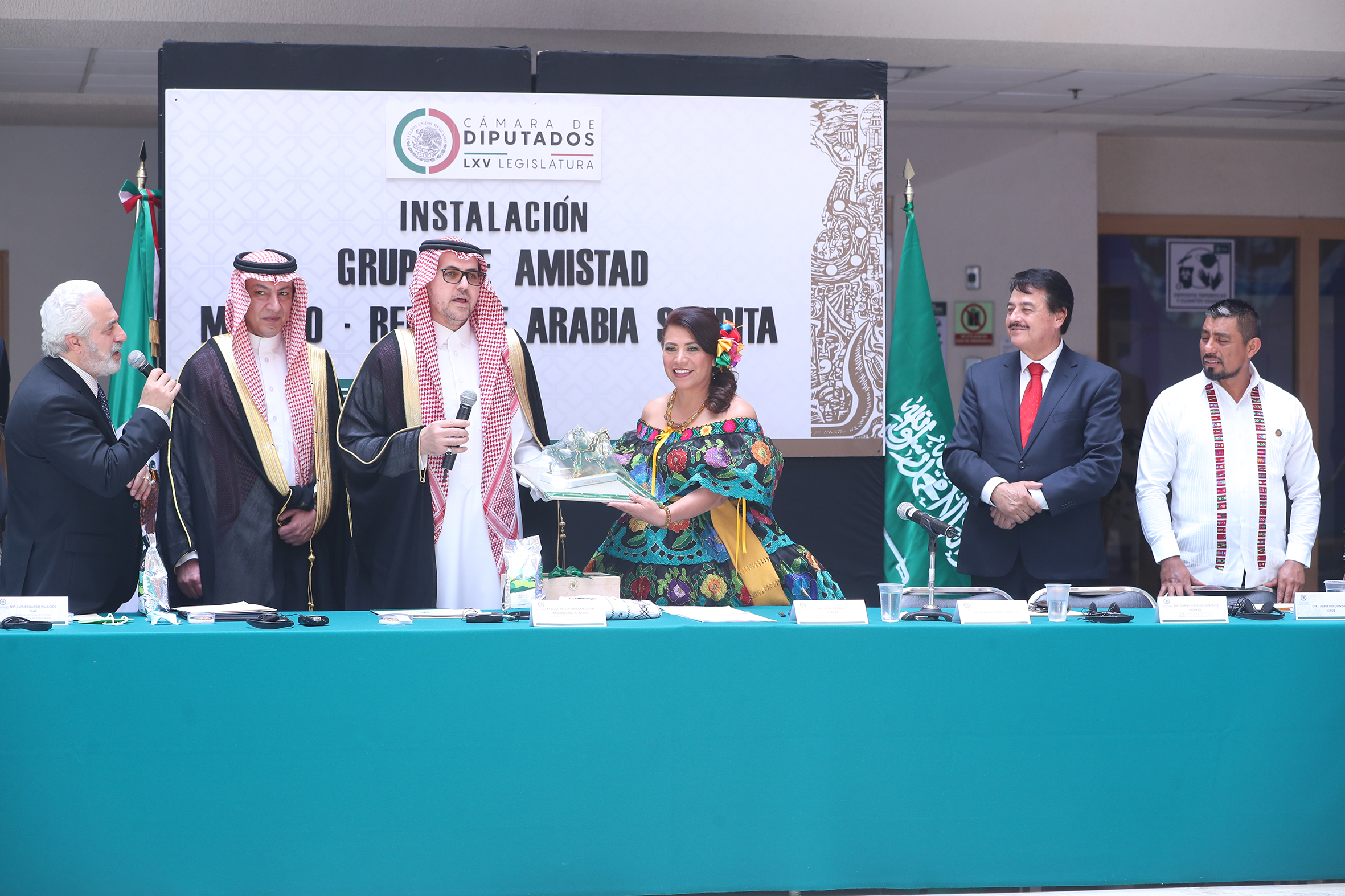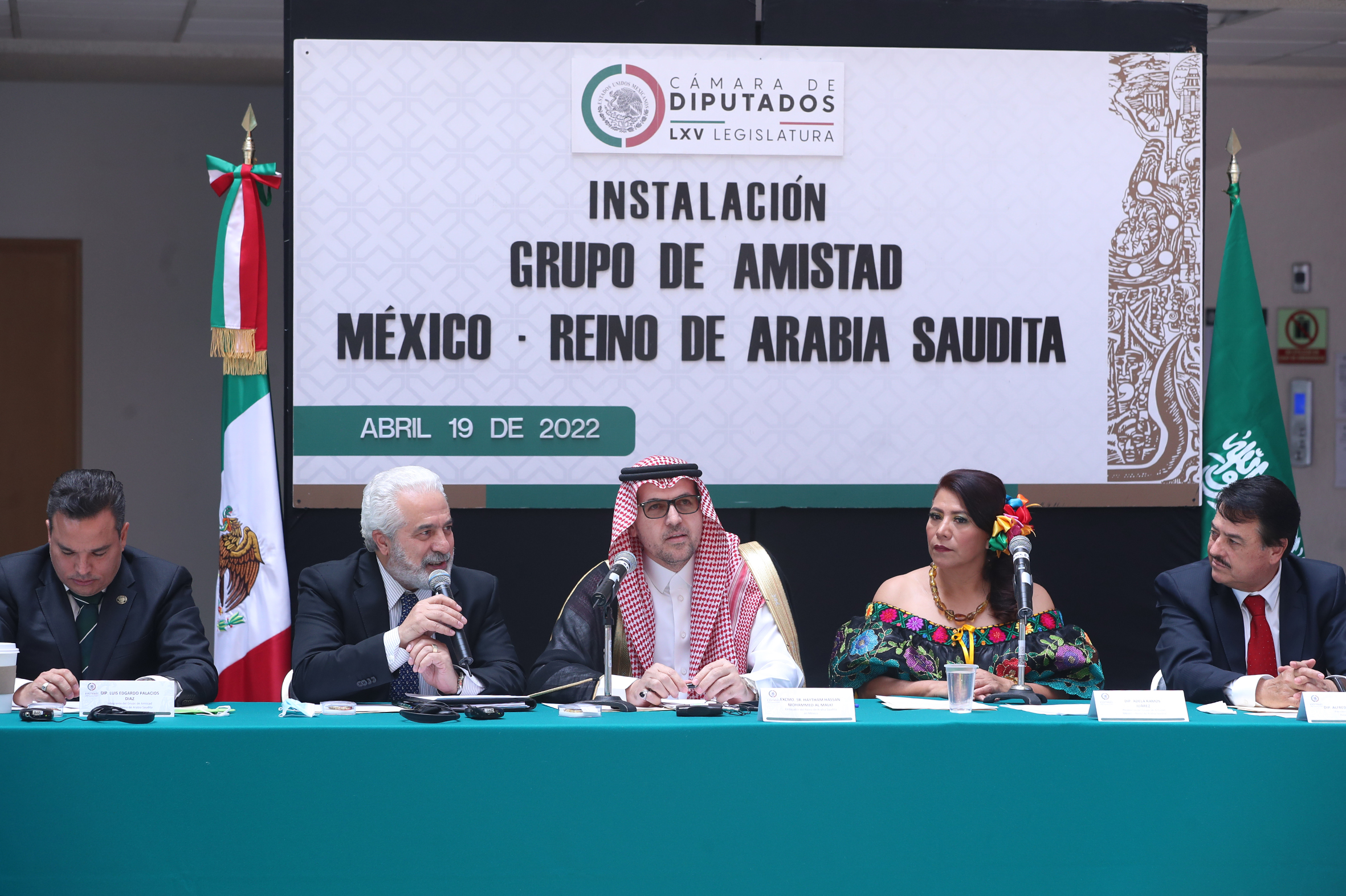 Dip. Luis Edgardo Palacios, Sr. Bader Abdullah H. Alsharari, Excmo. Sr. Haytham Hassan Mohammed Al Malki, Dip. Adela Ramos y Dip. Alfredo Femat