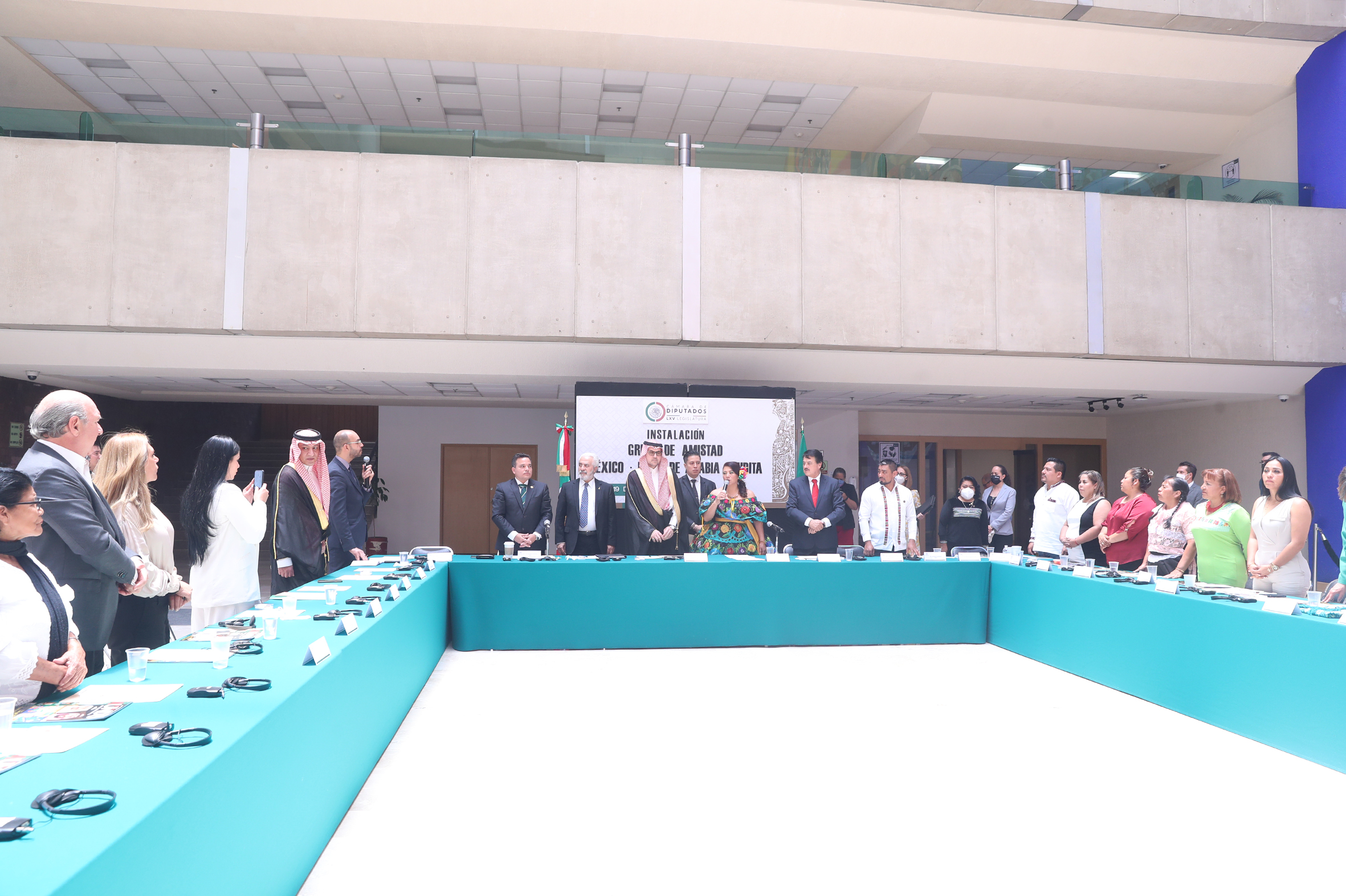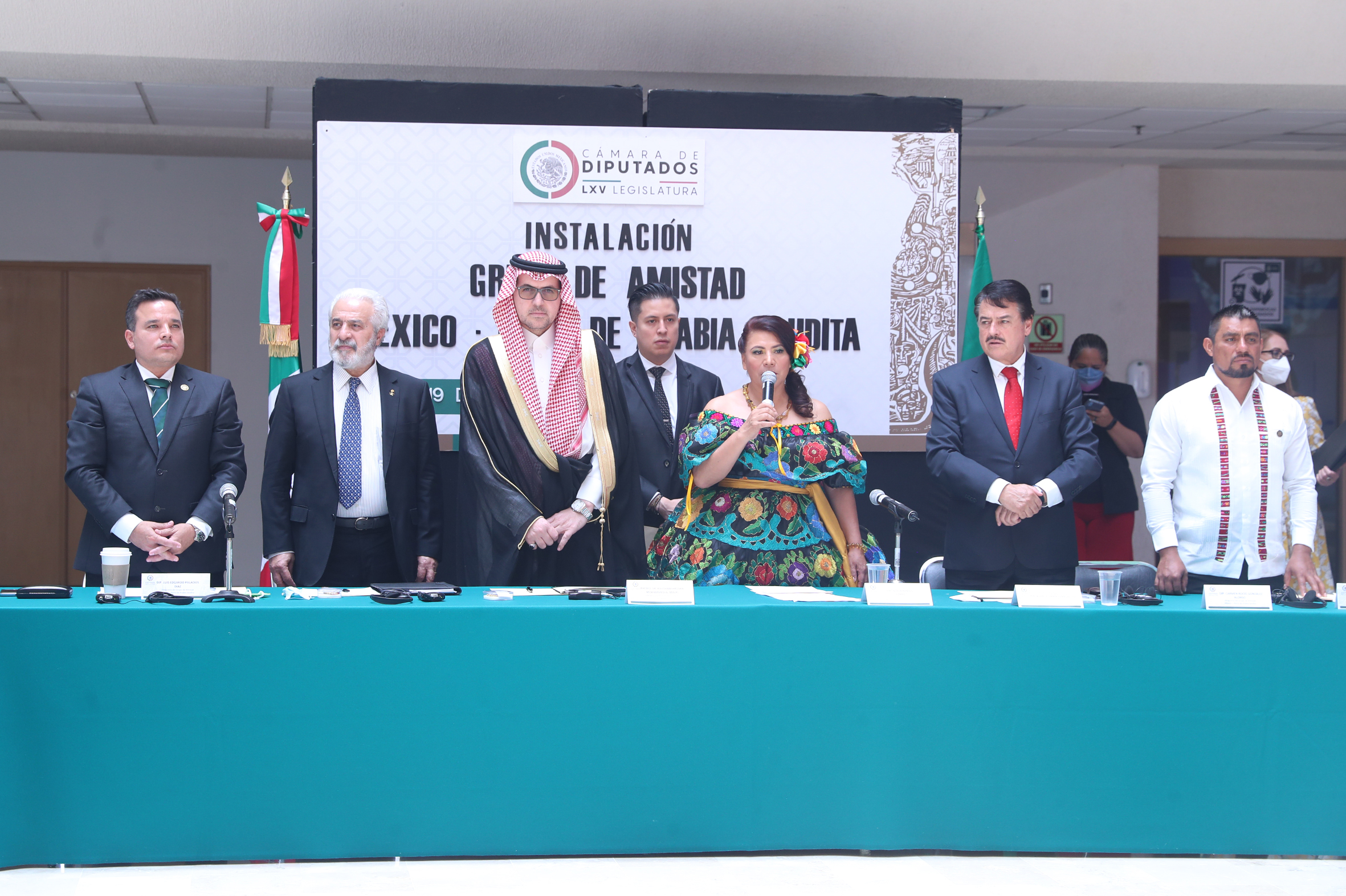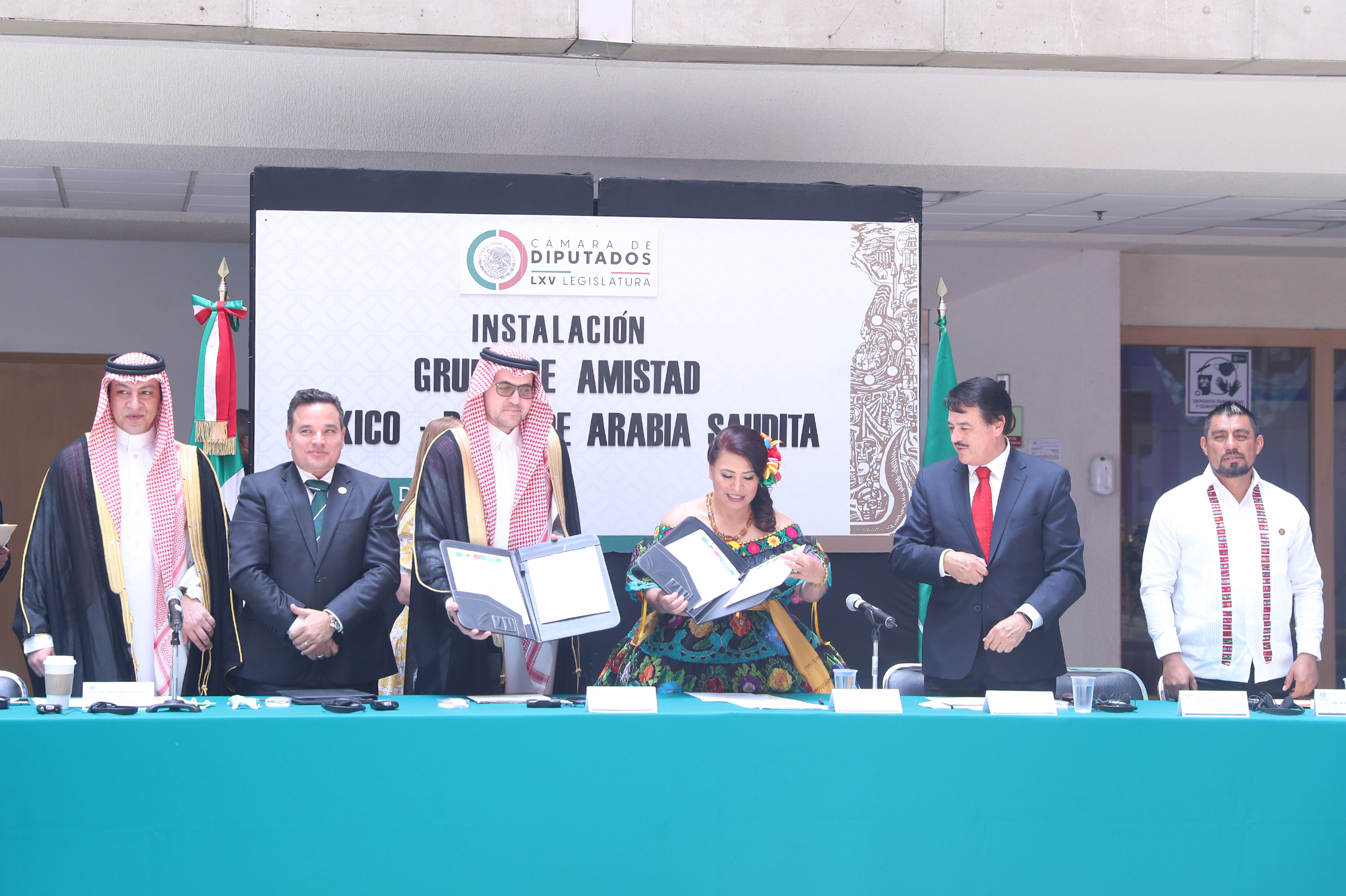 Dip. Luis Edgardo Palacios, Sr. Bader Abdullah H. Alsharari, Excmo. Sr. Haytham Hassan Mohammed Al Malki, Dip. Adela Ramos y Dip. Alfredo Femat