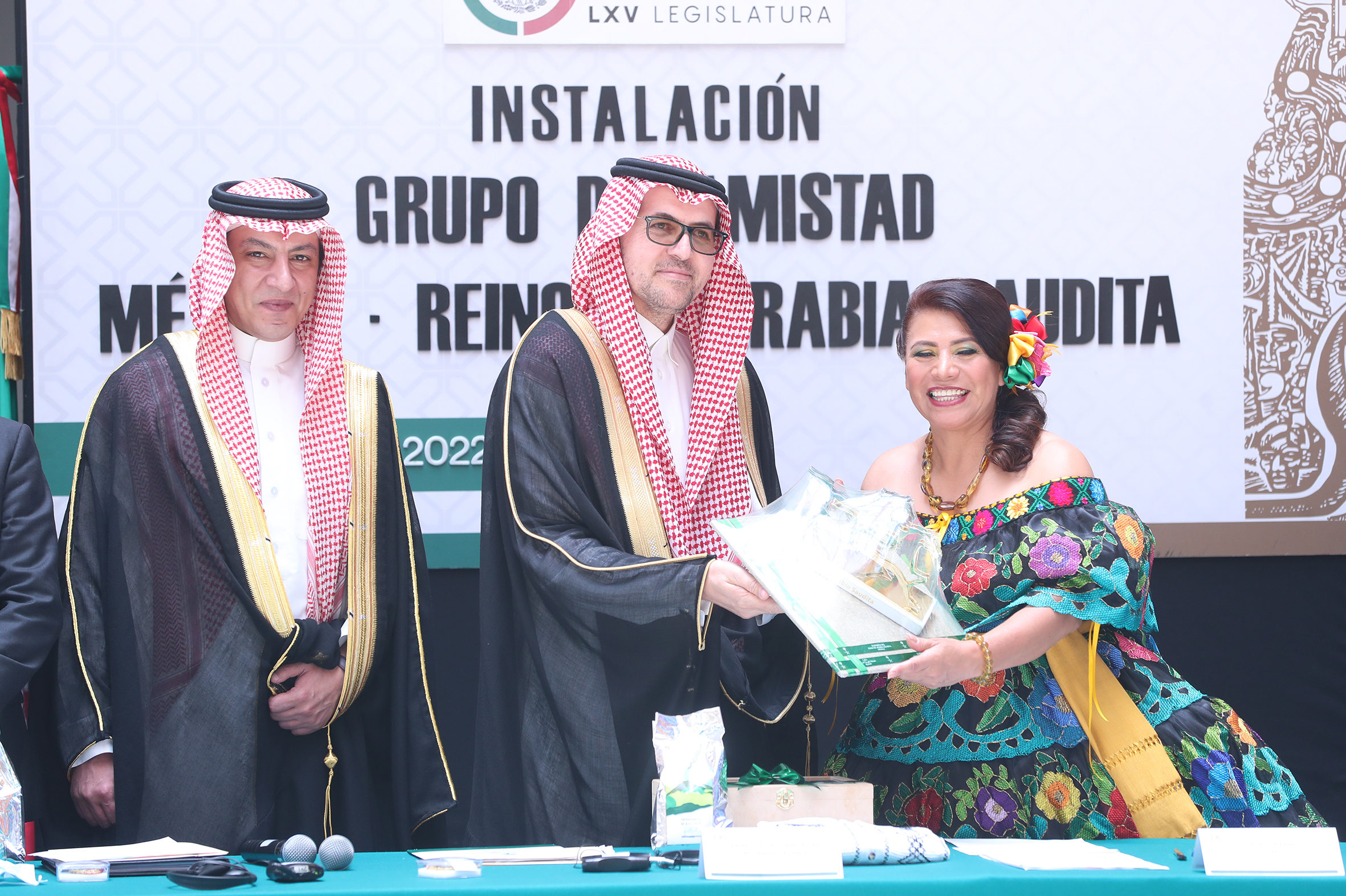 Invitado especial, Sr. Bader Abdullah H. Alsharari, Excmo. Sr. Haytham Hassan Mohammed Al Malki, Dip. Adela Ramos y Dip. Alfredo Femat