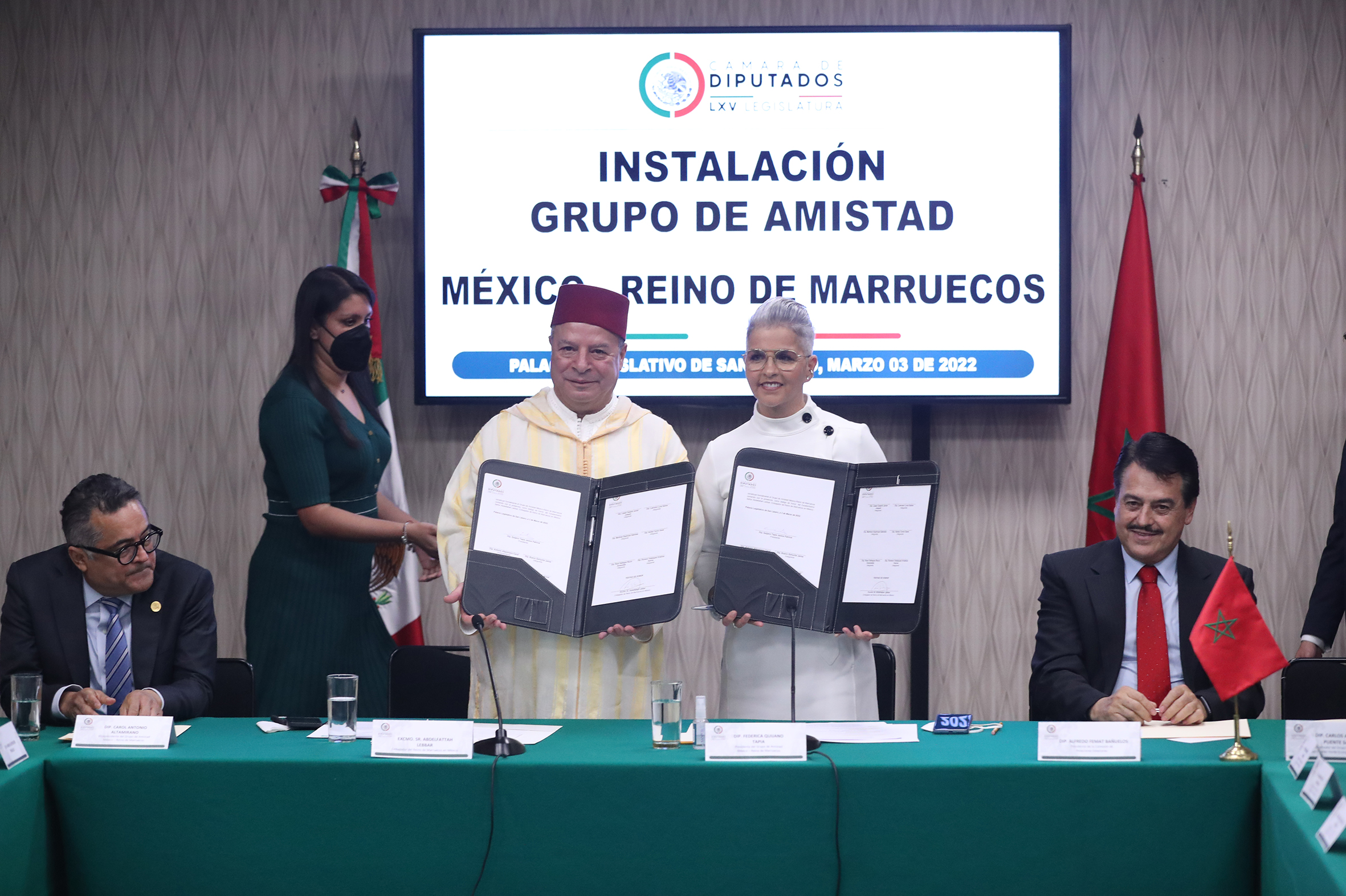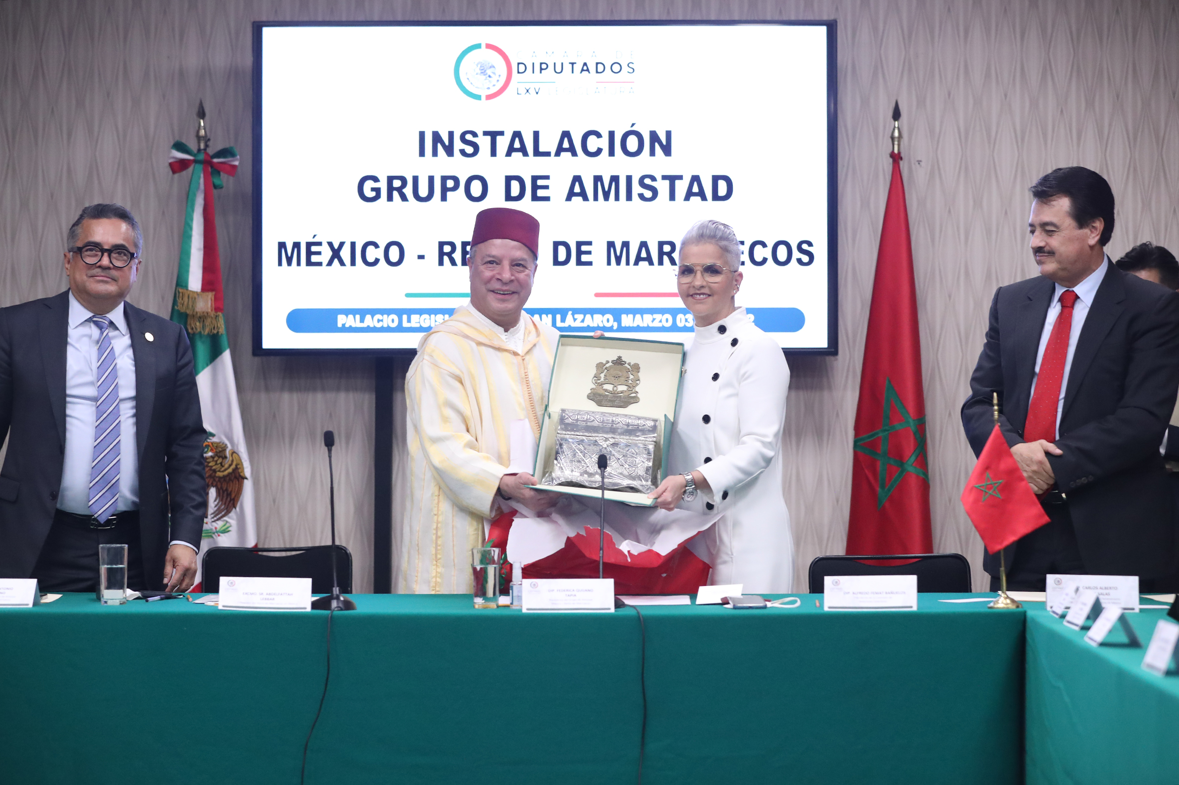 Dip. Carol Antonio Altamirano, Excmo. Sr. Abdelfattah Lebbar, Dip. Federica Quijano y Dip. Alfredo Femat