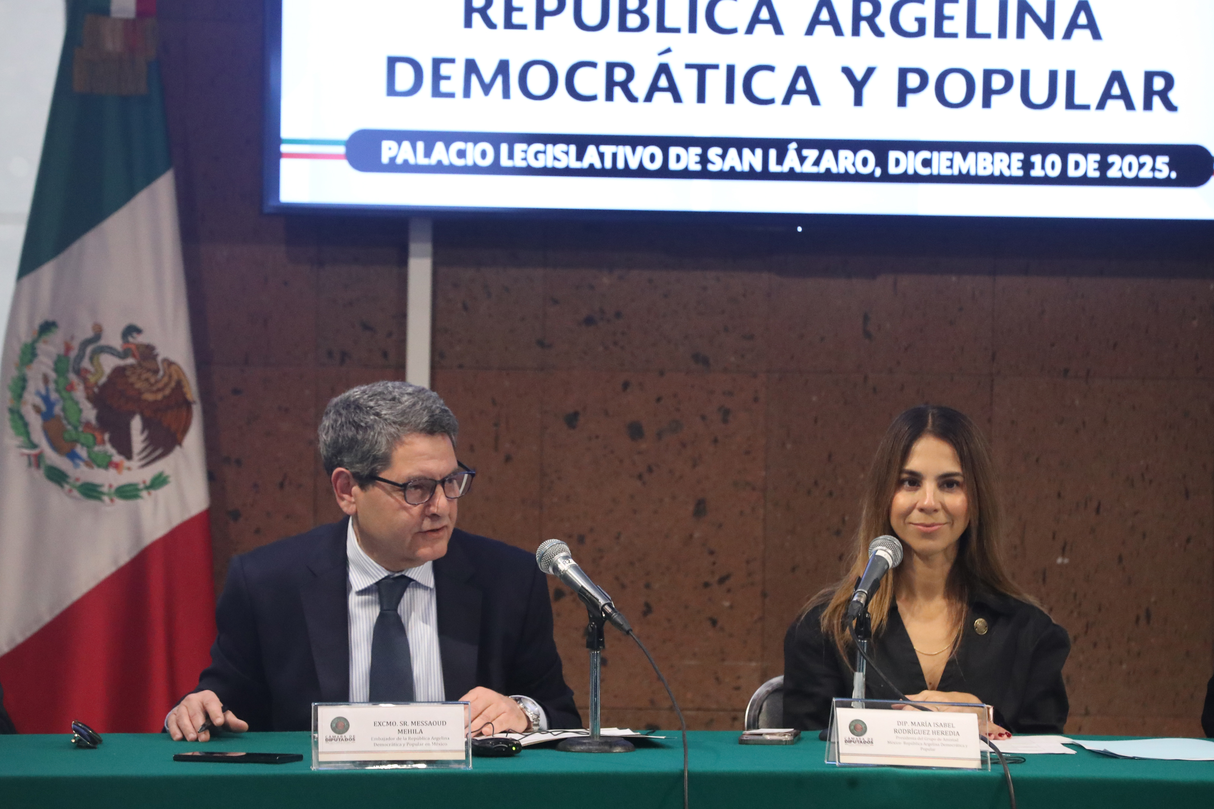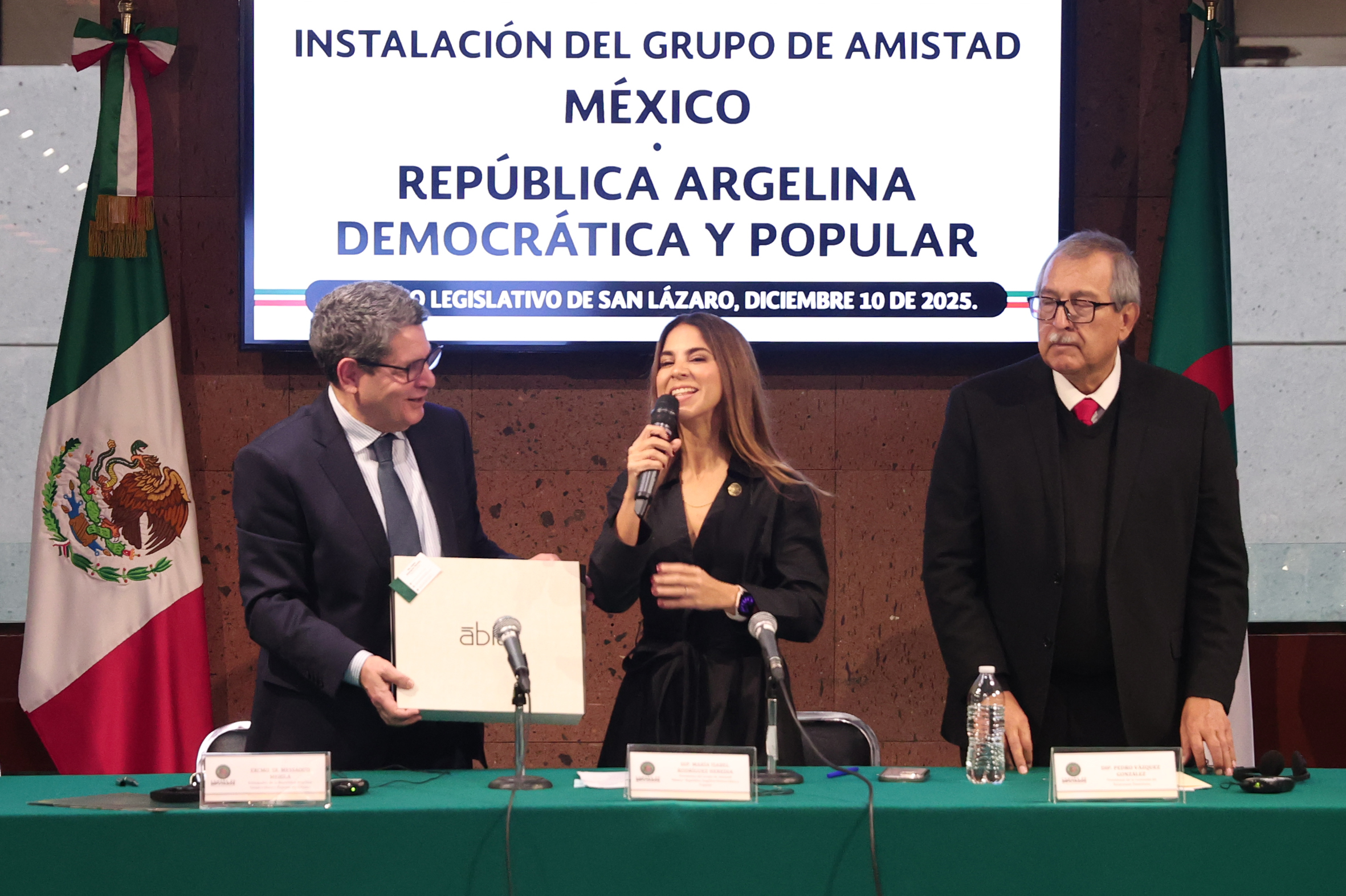 Excmo. Sr. Messaoud Mehila, Dip. María Isabel Rodríguez y Dip. Pedro Vázquez
