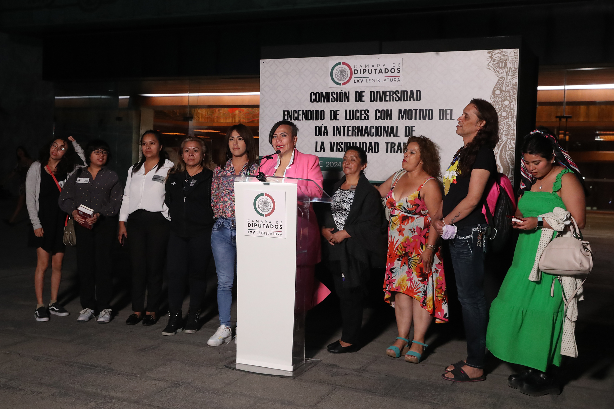 Iluminación del Frontispicio por el Día Mundial de la Visibilidad Trans