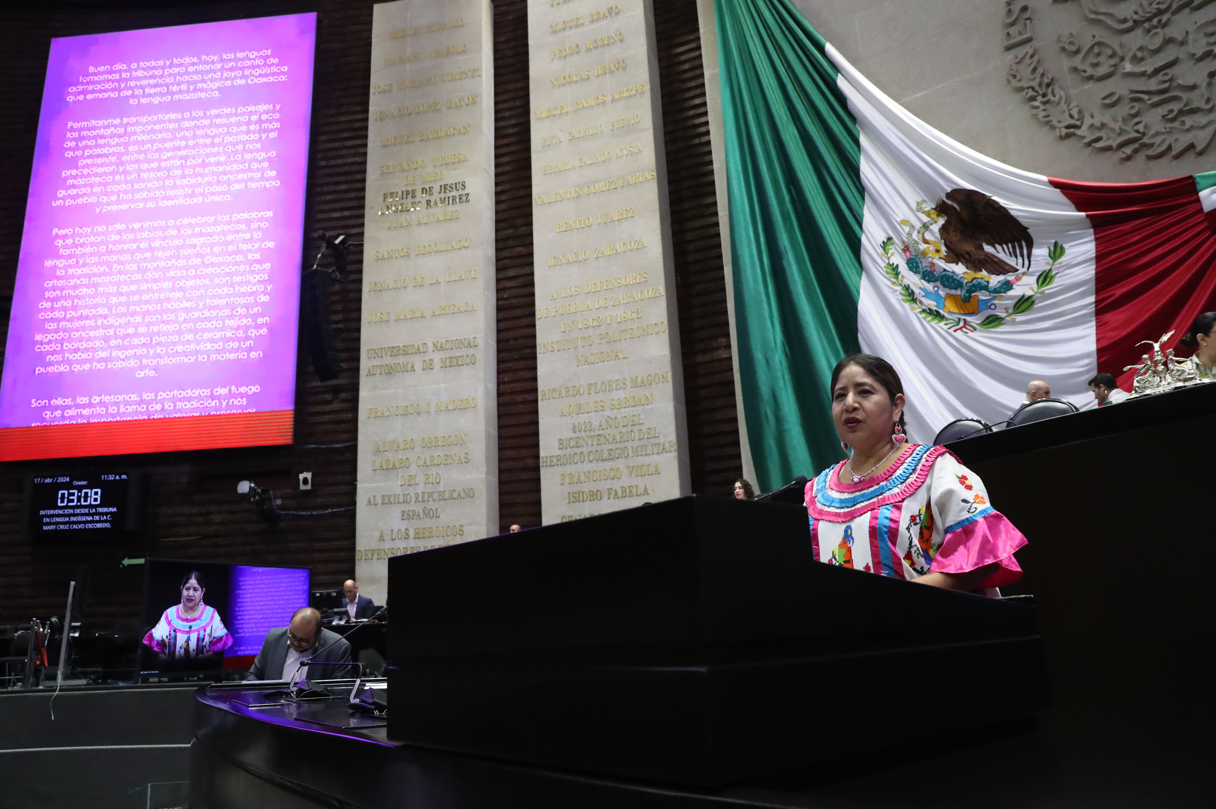 Intervención de la C. Mary Cruz Calvo Escobedo, en lengua mazateca