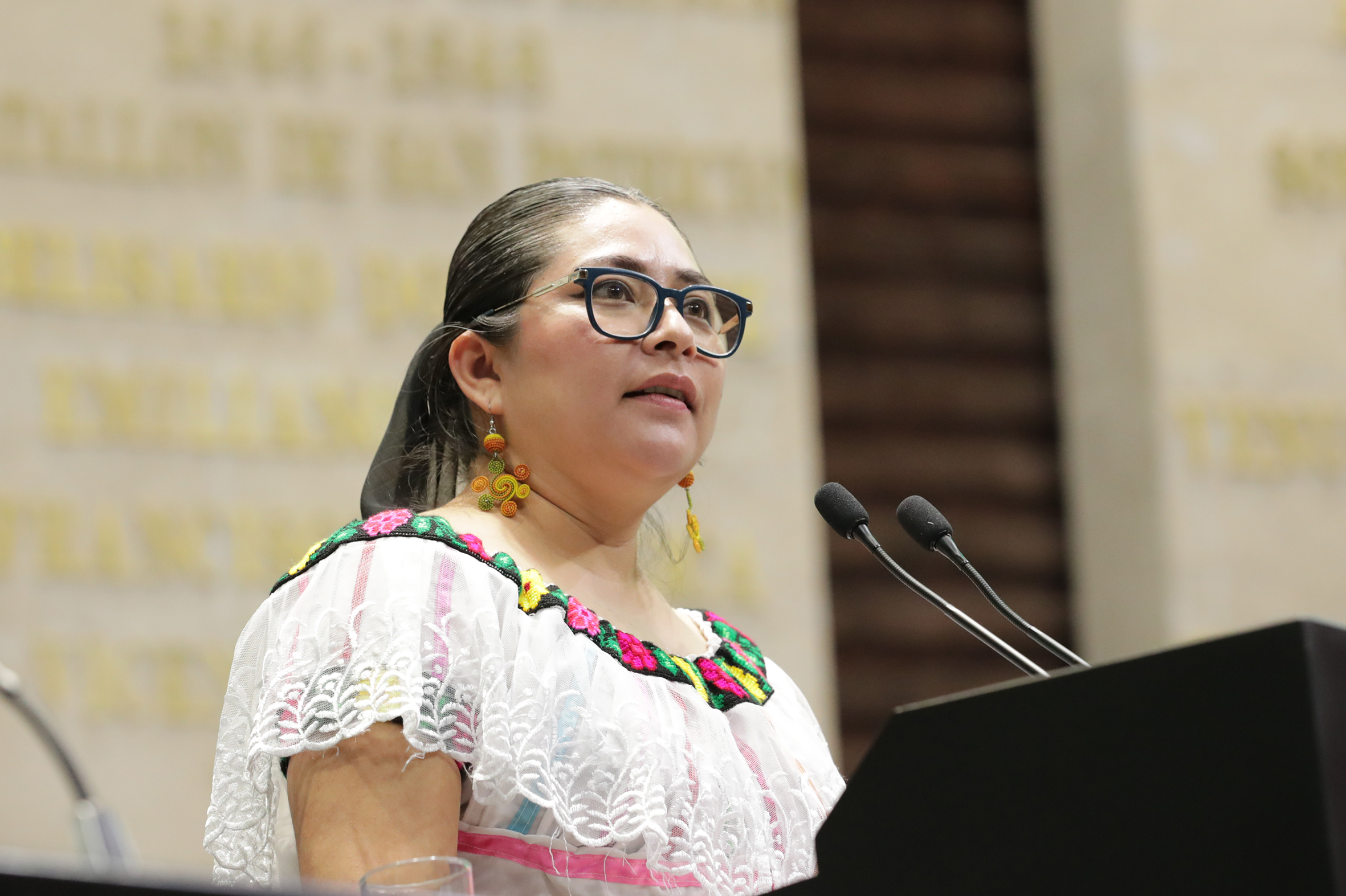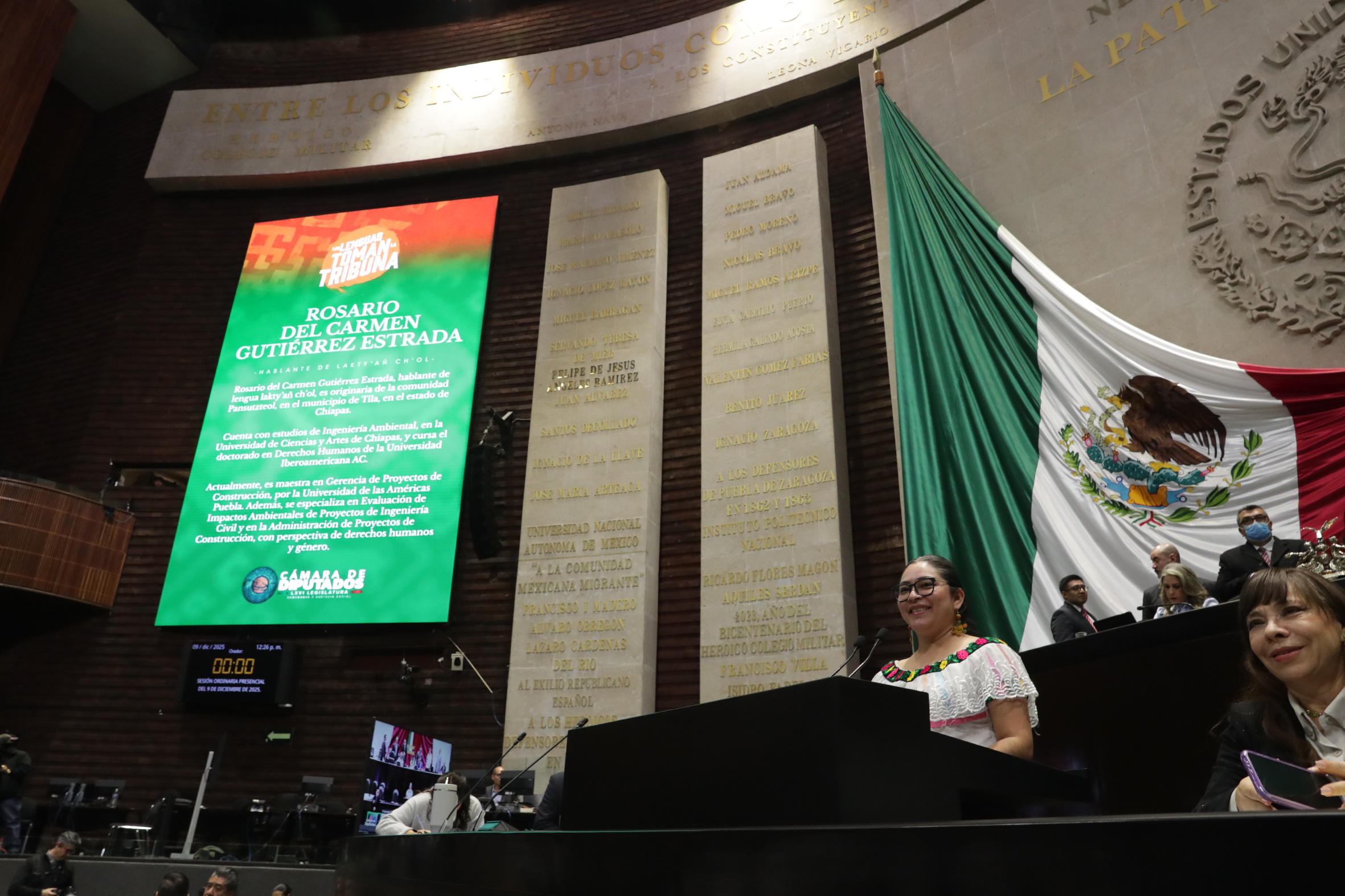 Intervención desde la tribuna de la C. Rosario del Carmen Gutiérrez Estrada, hablante de lengua Chol