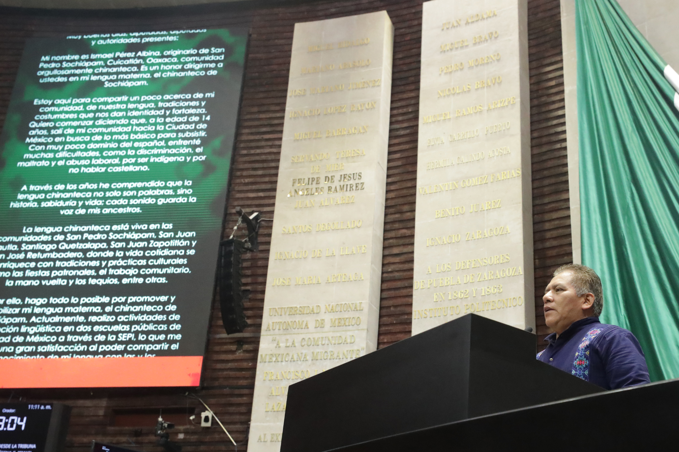 Intervención desde la tribuna del C. Ismael Pérez Albina, hablante de lengua Chinanteco