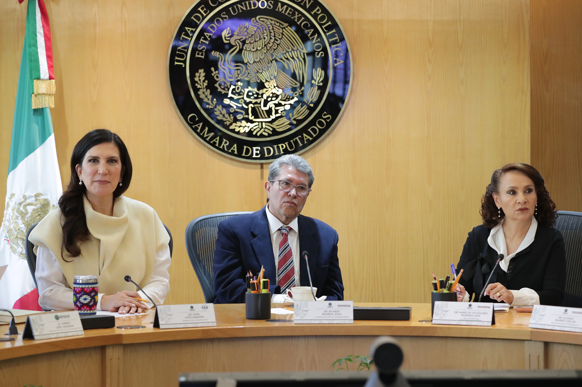 Dip. Presidenta Kenia López Rabadán, Dip. Ricardo Monreal y Dip. María de los Dolores Padierna