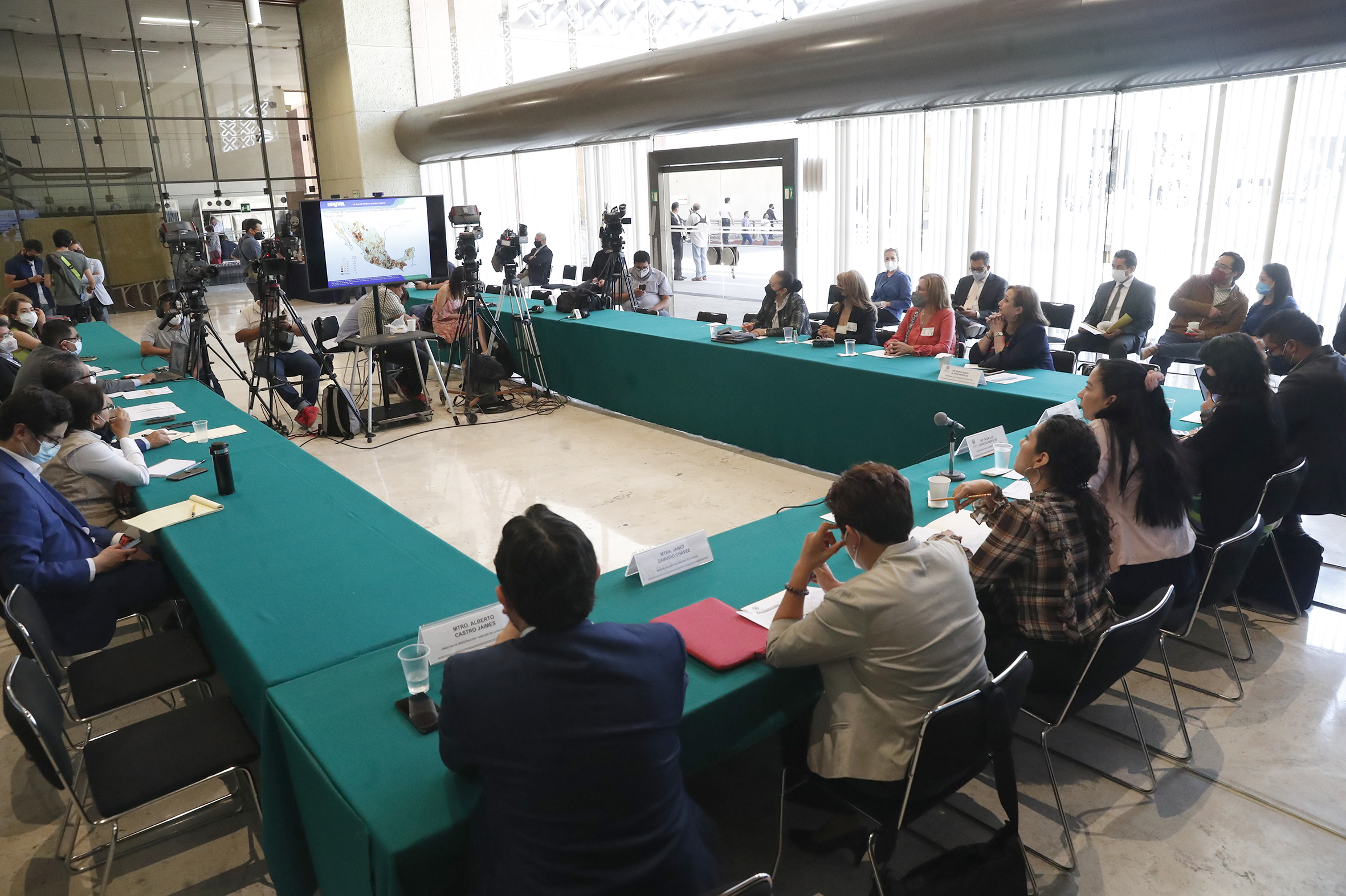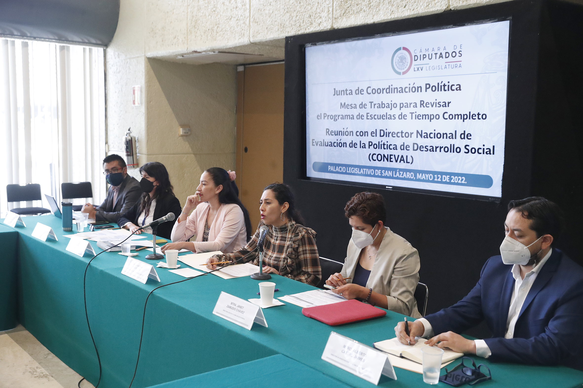 Mtro. Fernando García, Mtra. Araceli Zahi Martínez, Dip. Olga Luz Espinosa, Dip. Flora Tania Cruz, Mtra Janet Zamudio y Mtro. Alberto Castro