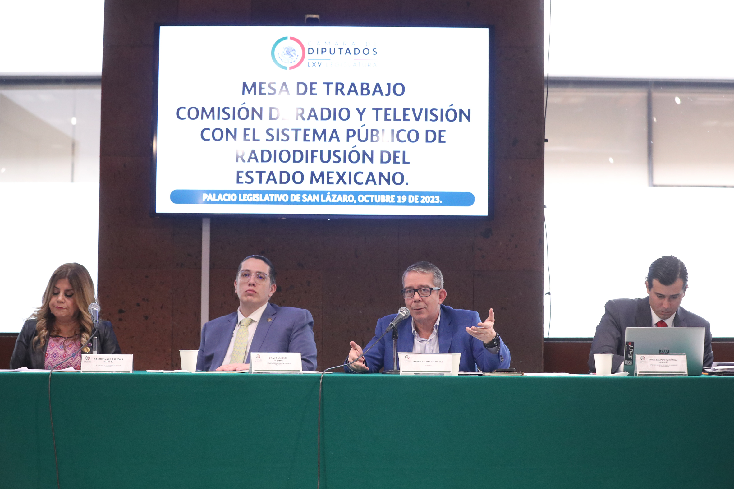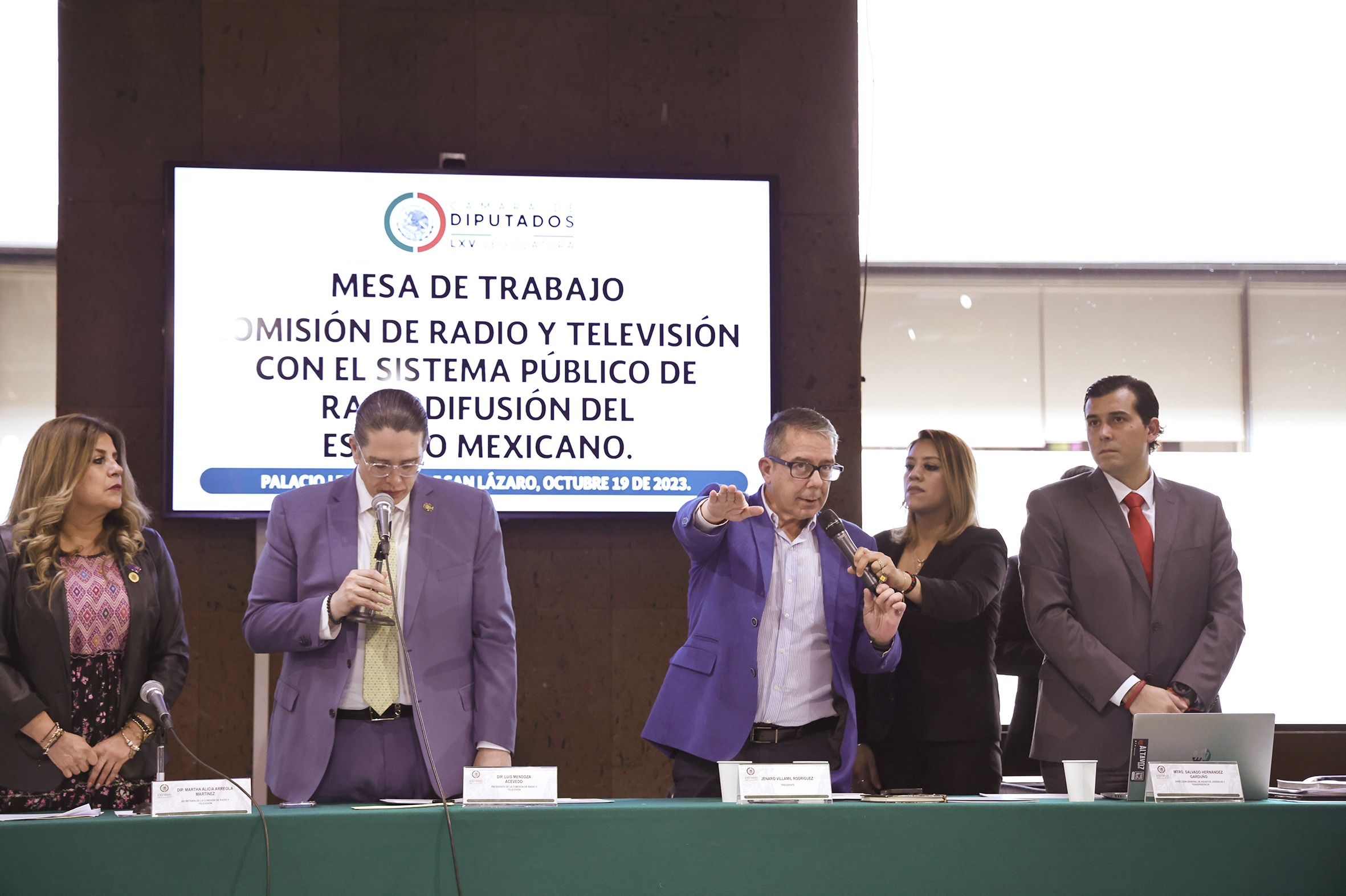 Dip. Martha Alicia Arreola, Dip. Luis Mendoza, Jenaro Villamil y Mtro. Salvador Hernández