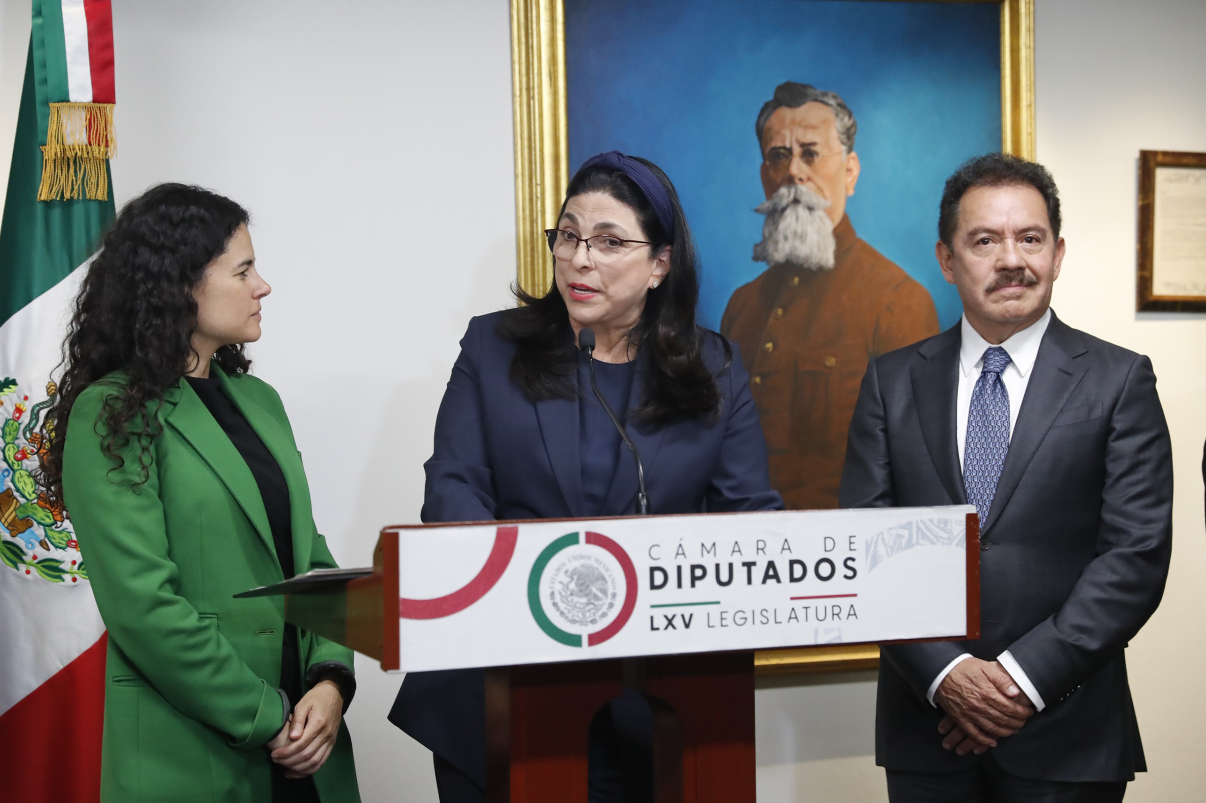 Mtra. Luisa María Alcalde, Dip. Presidenta Marcela Guerra Castillo y Dip. Moisés Ignacio Mier