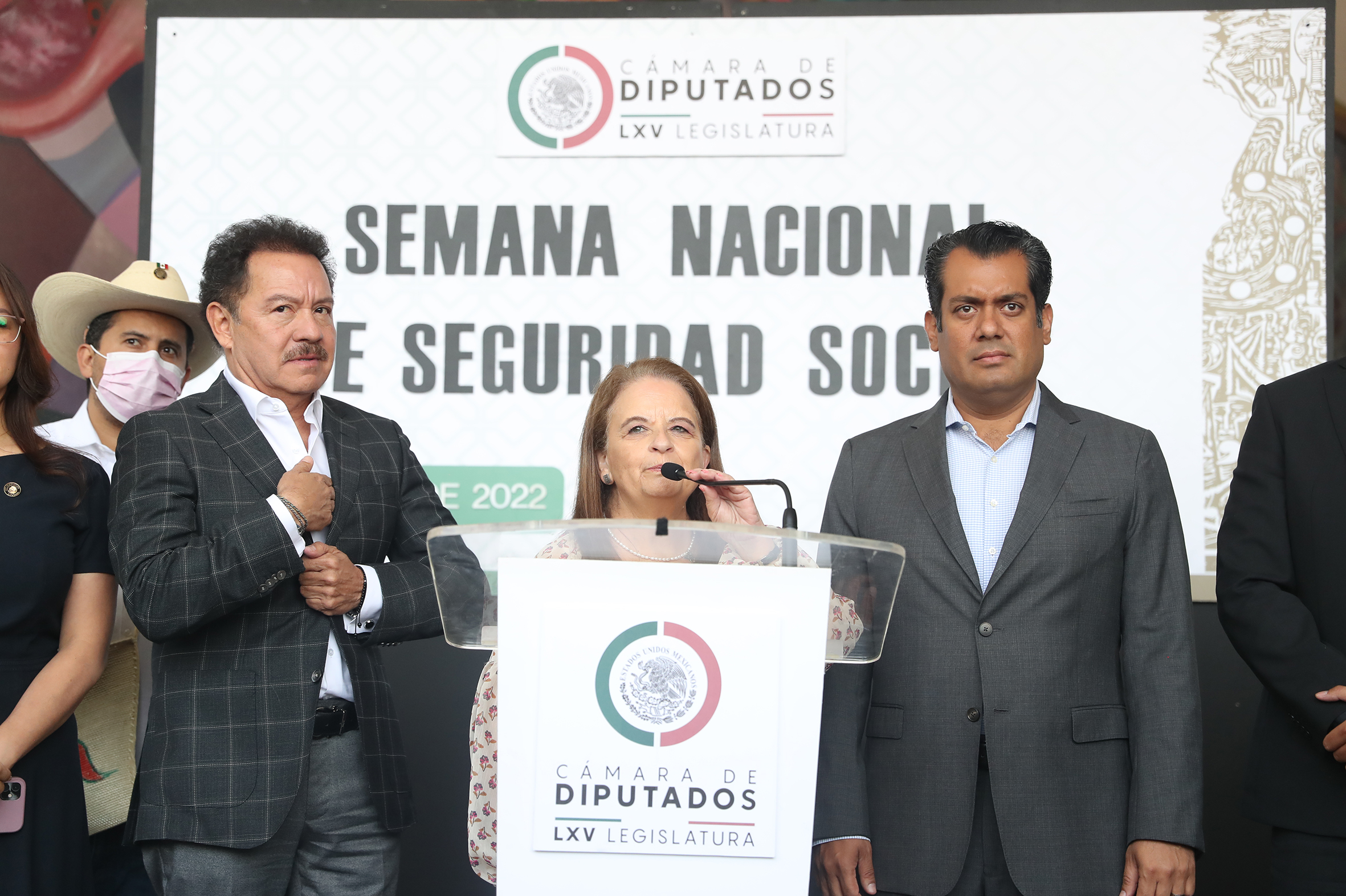 Dip. Moisés Ignacio Mier, Dip. Angélica Ivonne Cisneros y Dip. Presidente Sergio Gutiérrez
