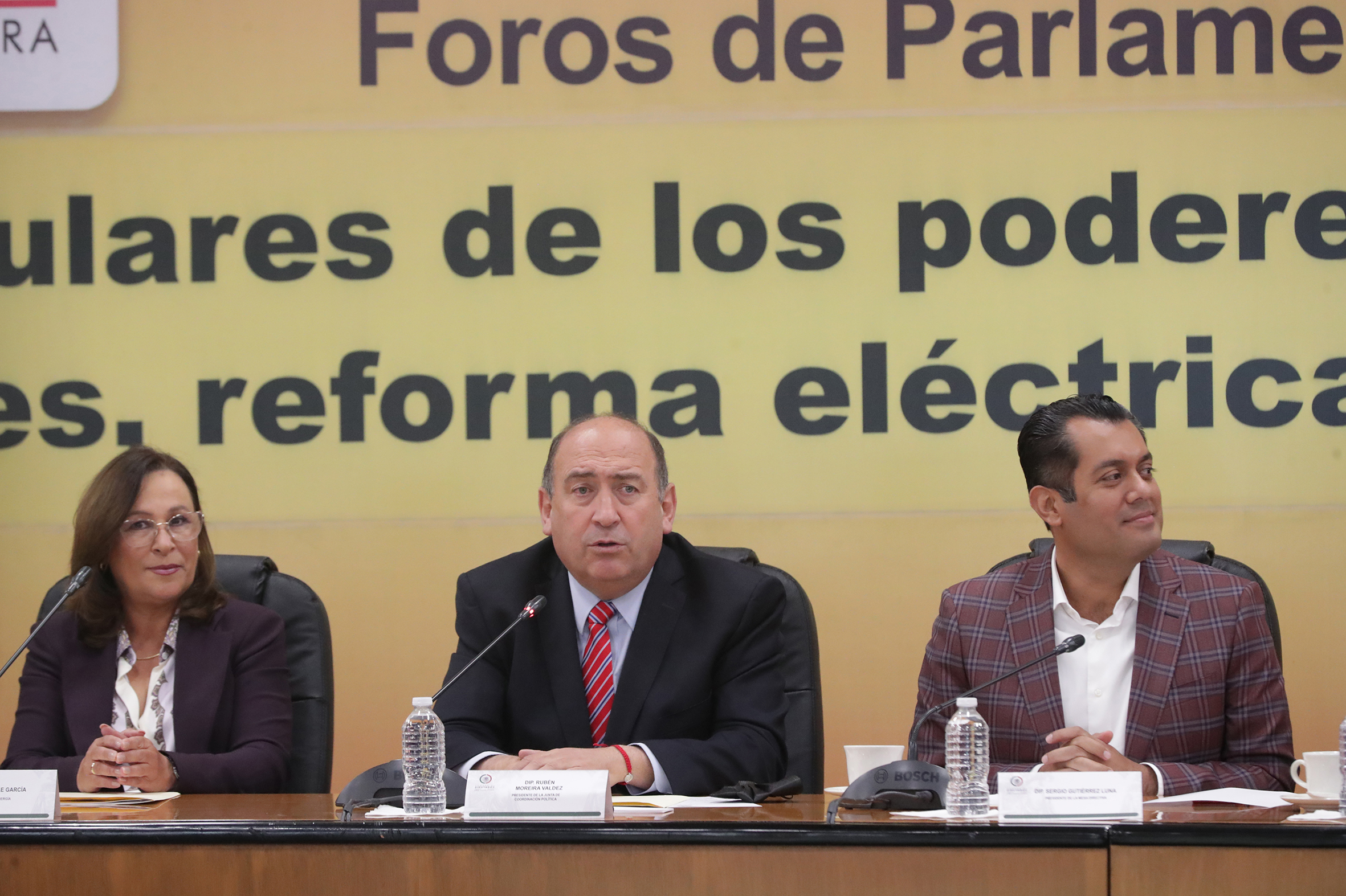 Ing. Rocío Nahle, Dip. Rubén Moreira y Dip. Presidente Sergio Gutiérrez
