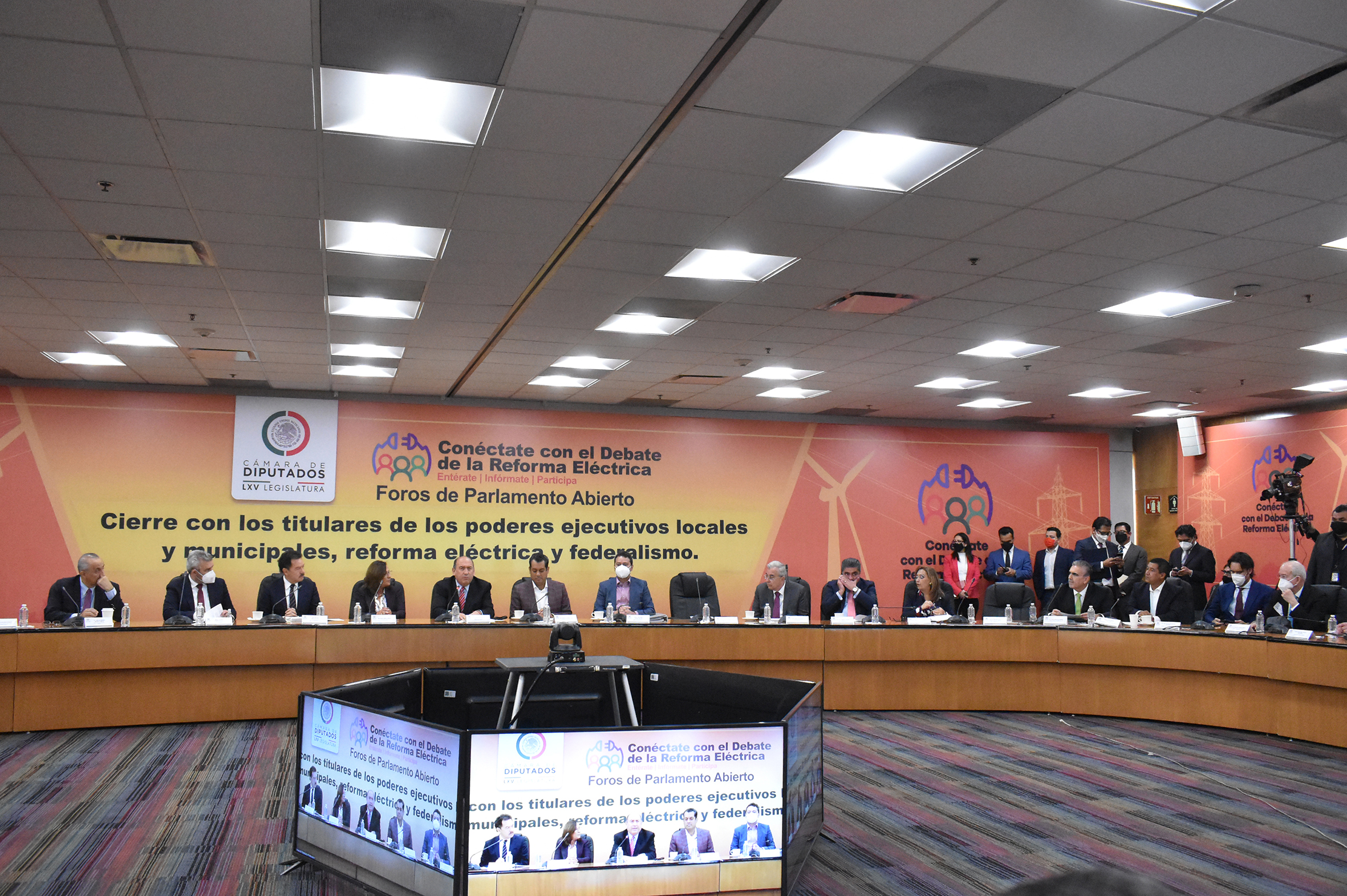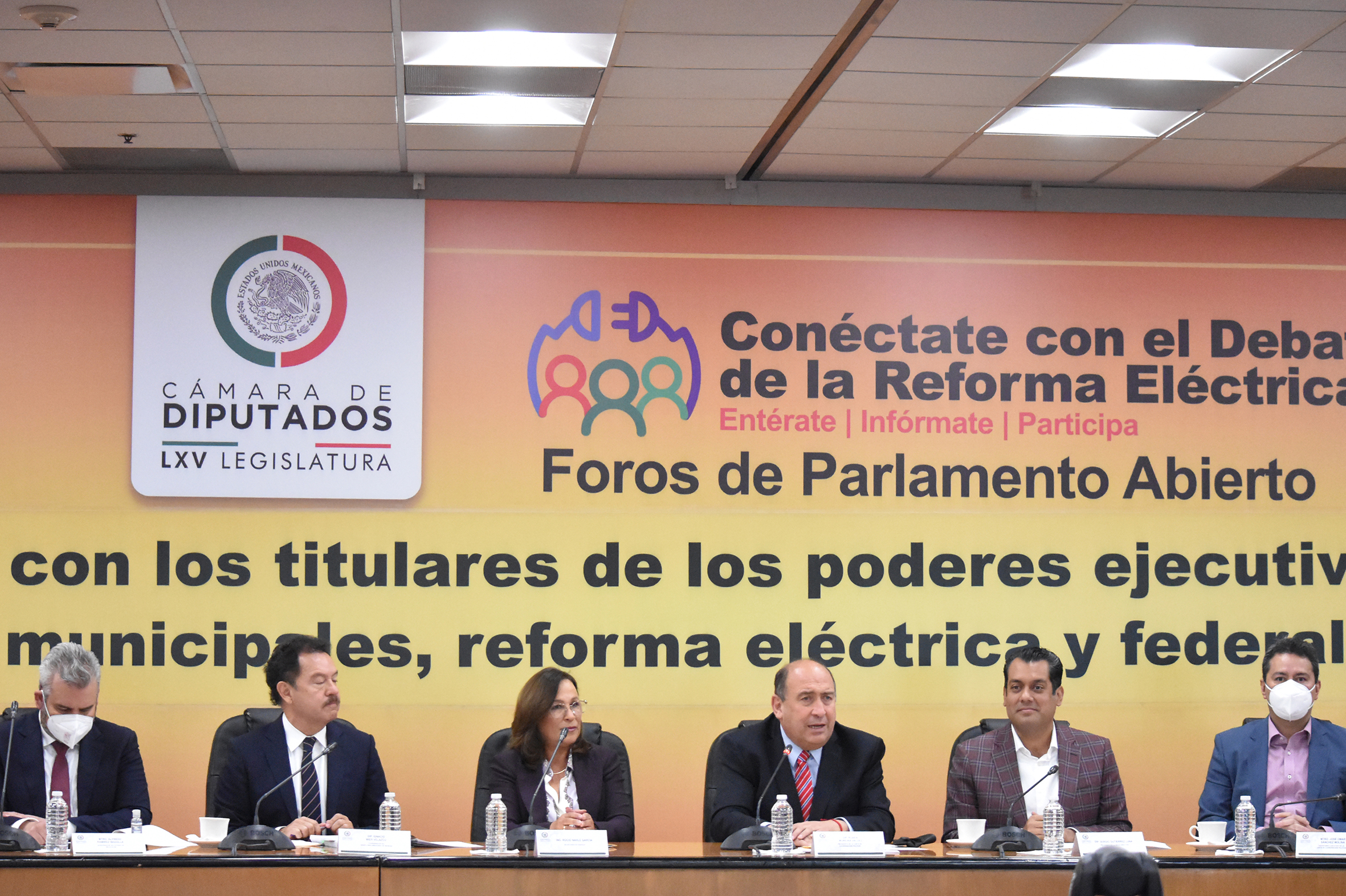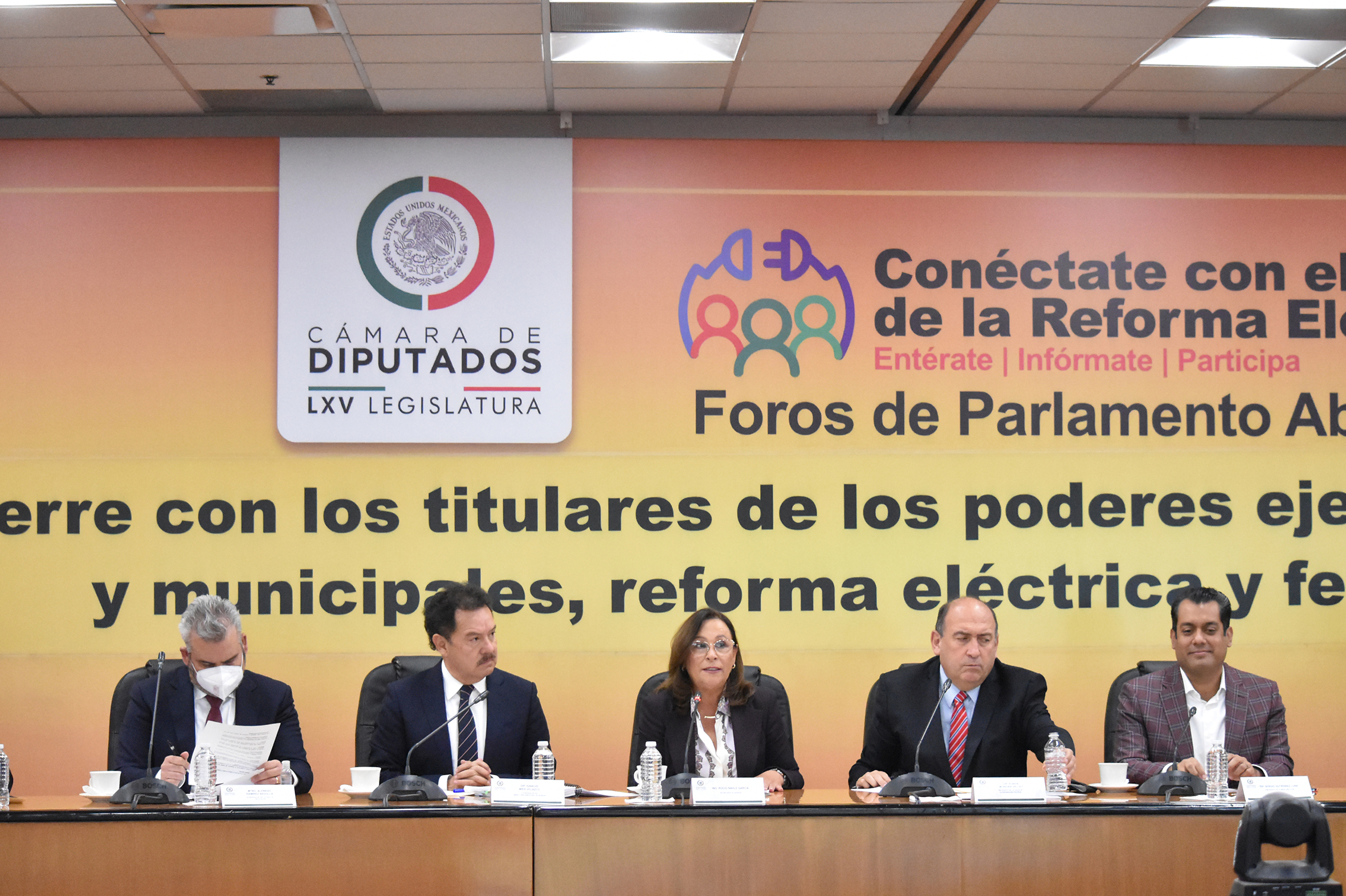Mtro. Alfredo Ramírez, Ing. Rocío Nahle, Dip. Rubén Moreira y Dip. Presidente Sergio Gutiérrez