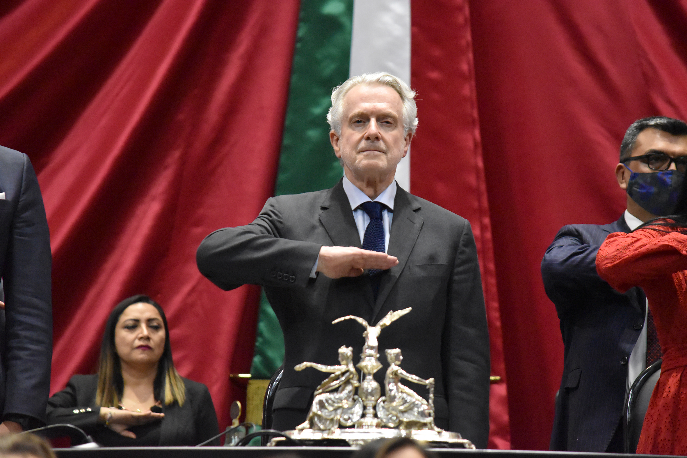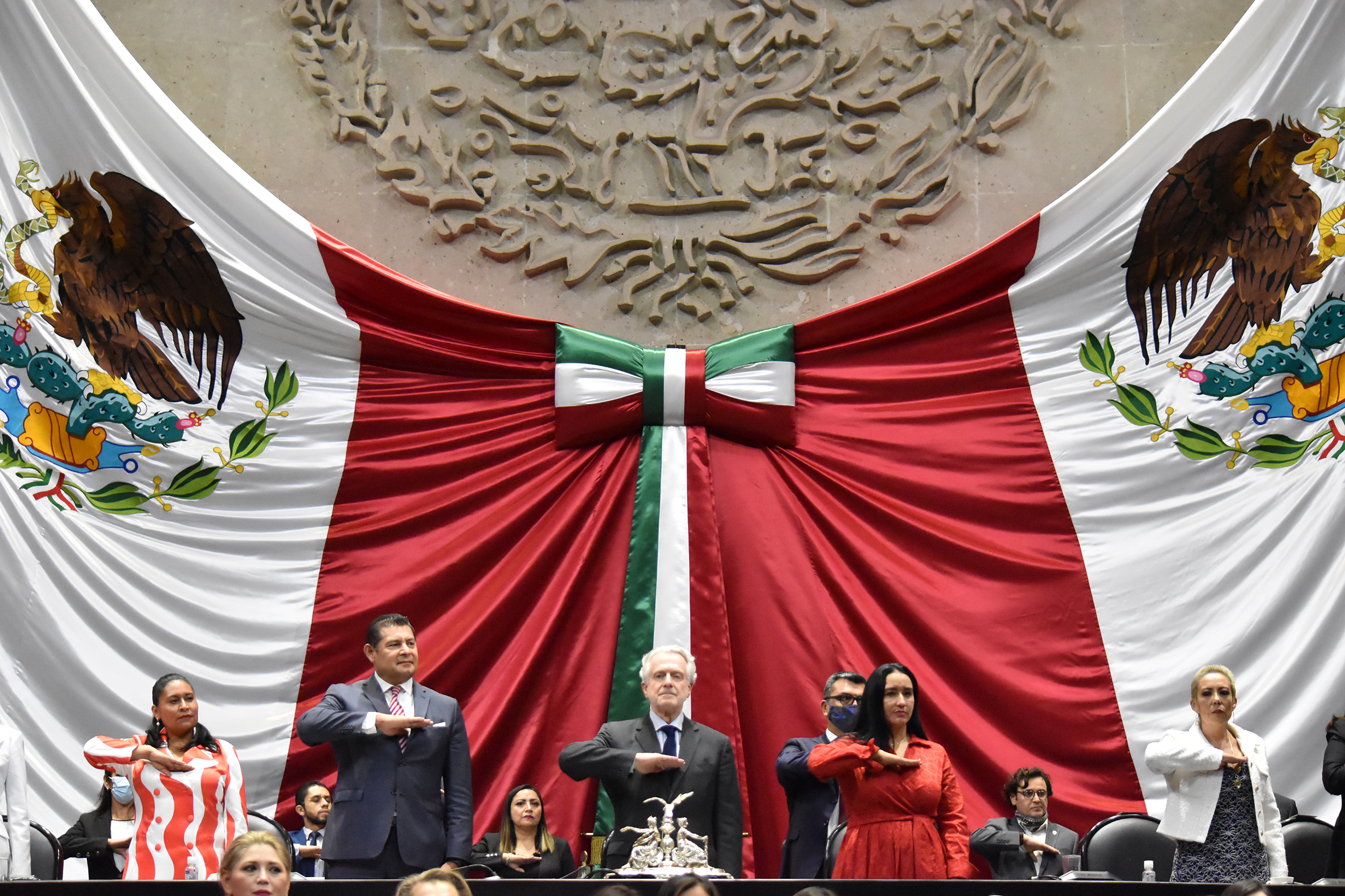 Sen. Alejandro Armenta, Dip. Presidente Santiago Creel y Dip. Karla Yuritzi Almazán
