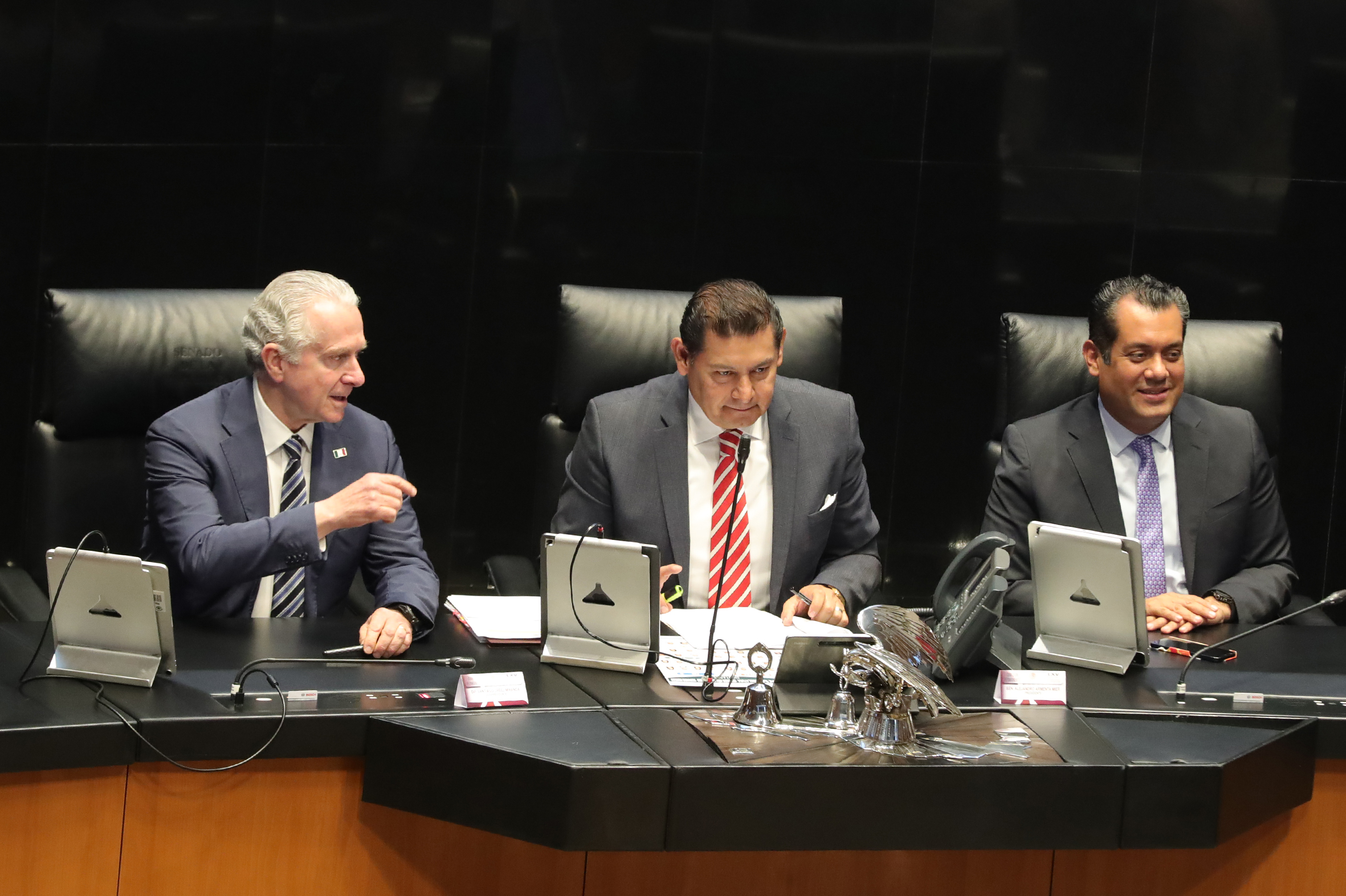 Dip. Presidente Santiago Creel, Sen. Alejandro Armenta y Dip. Sergio Gutiérrez