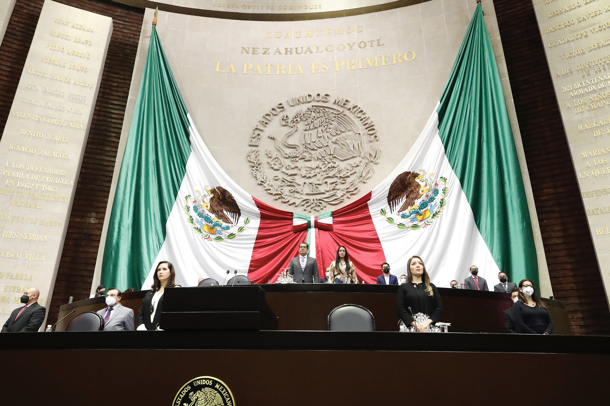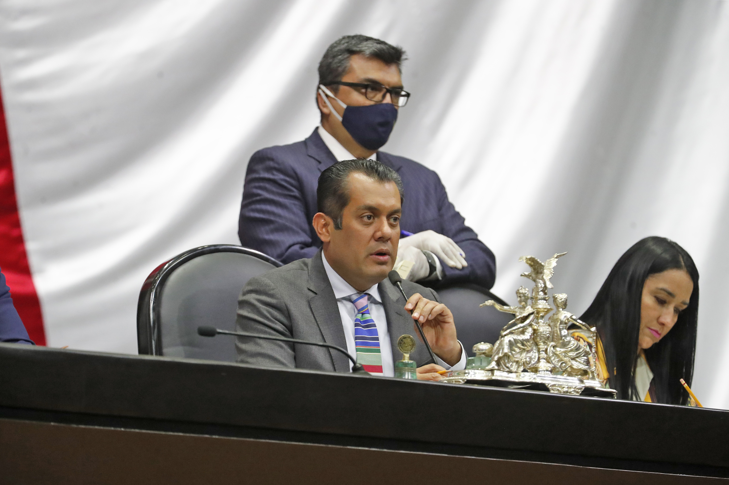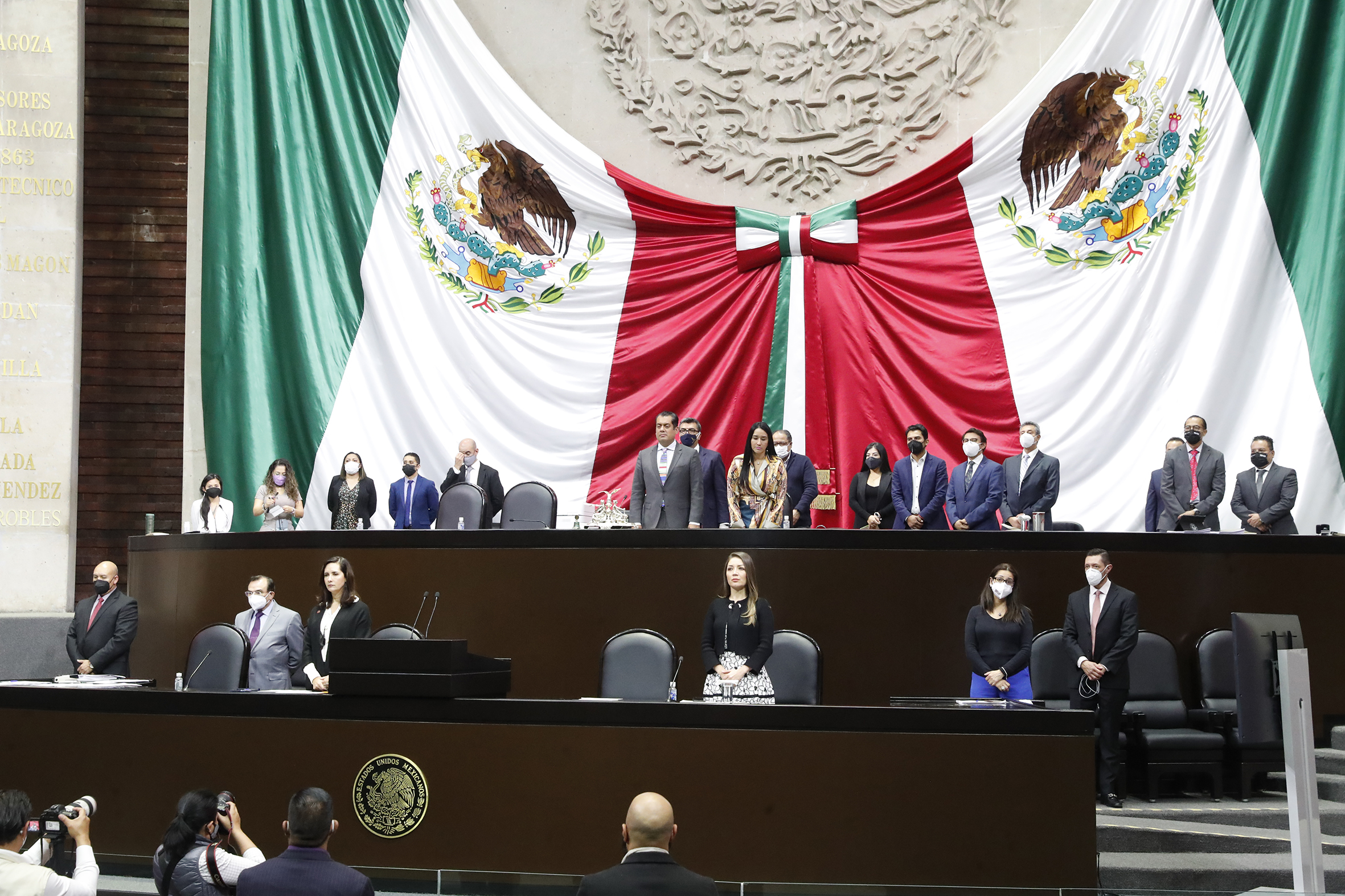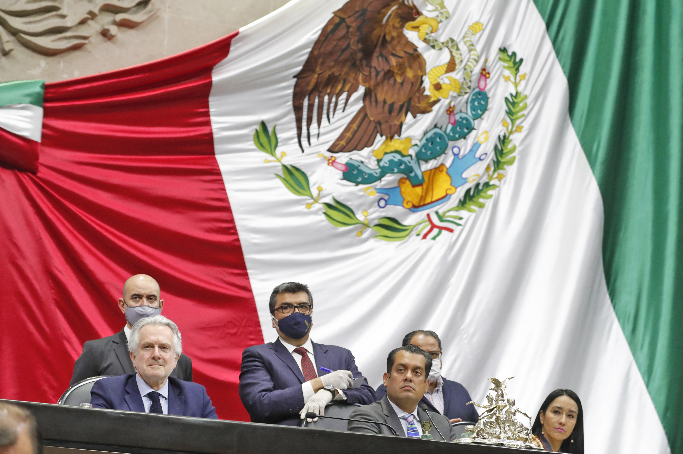 Dip. Santiago Creel, Dip. Presidente Sergio Gutiérrez y Dip. Karla Almazán