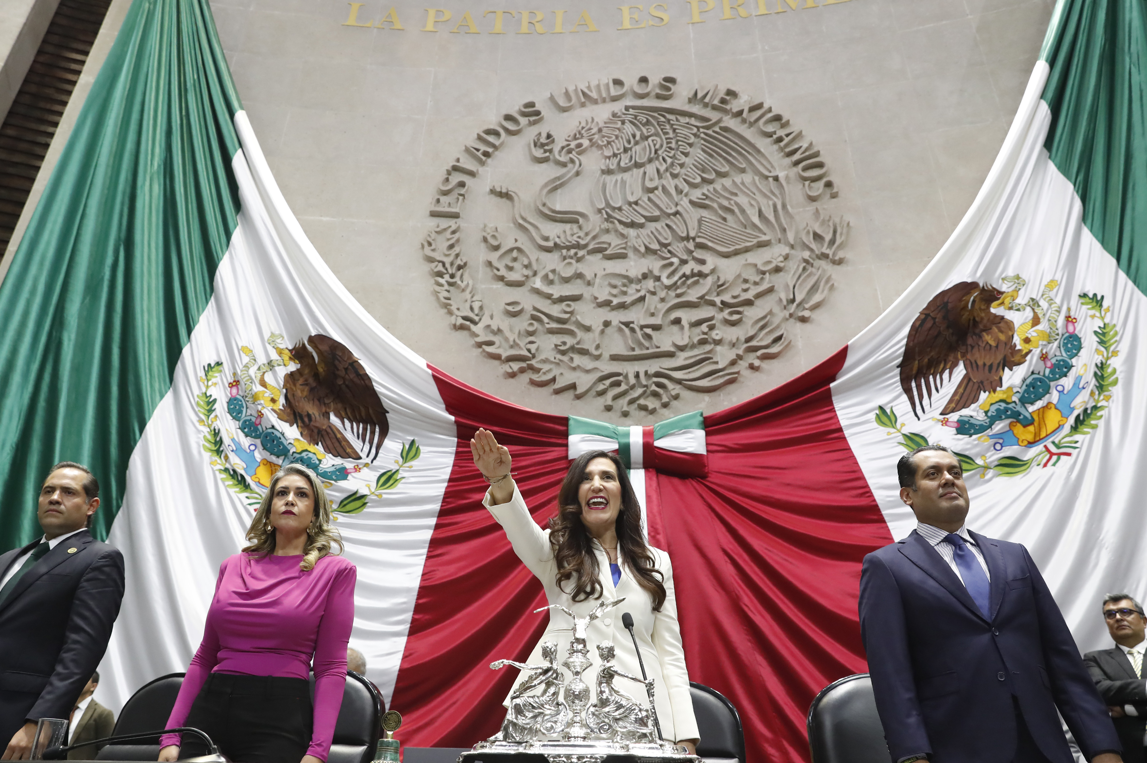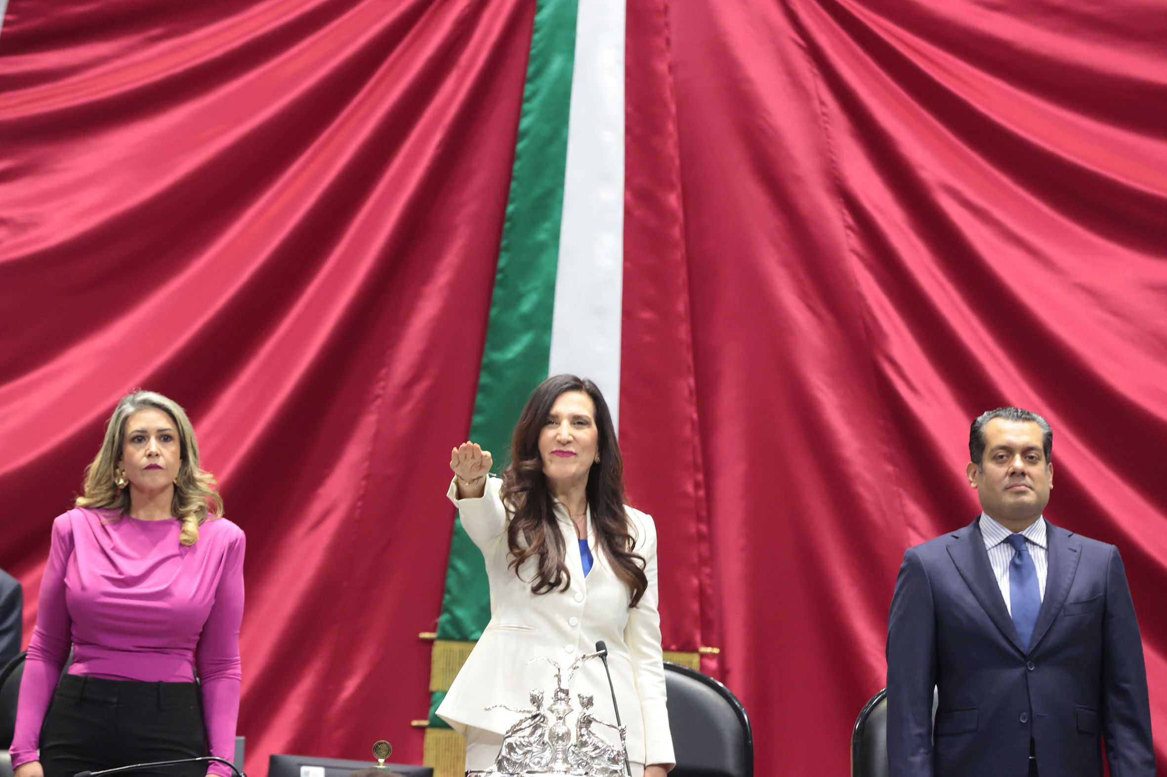 Dip. Paulina Rubio, Dip. Presidenta Kenia López Rabadán y Dip. Sergio Gutiérrez