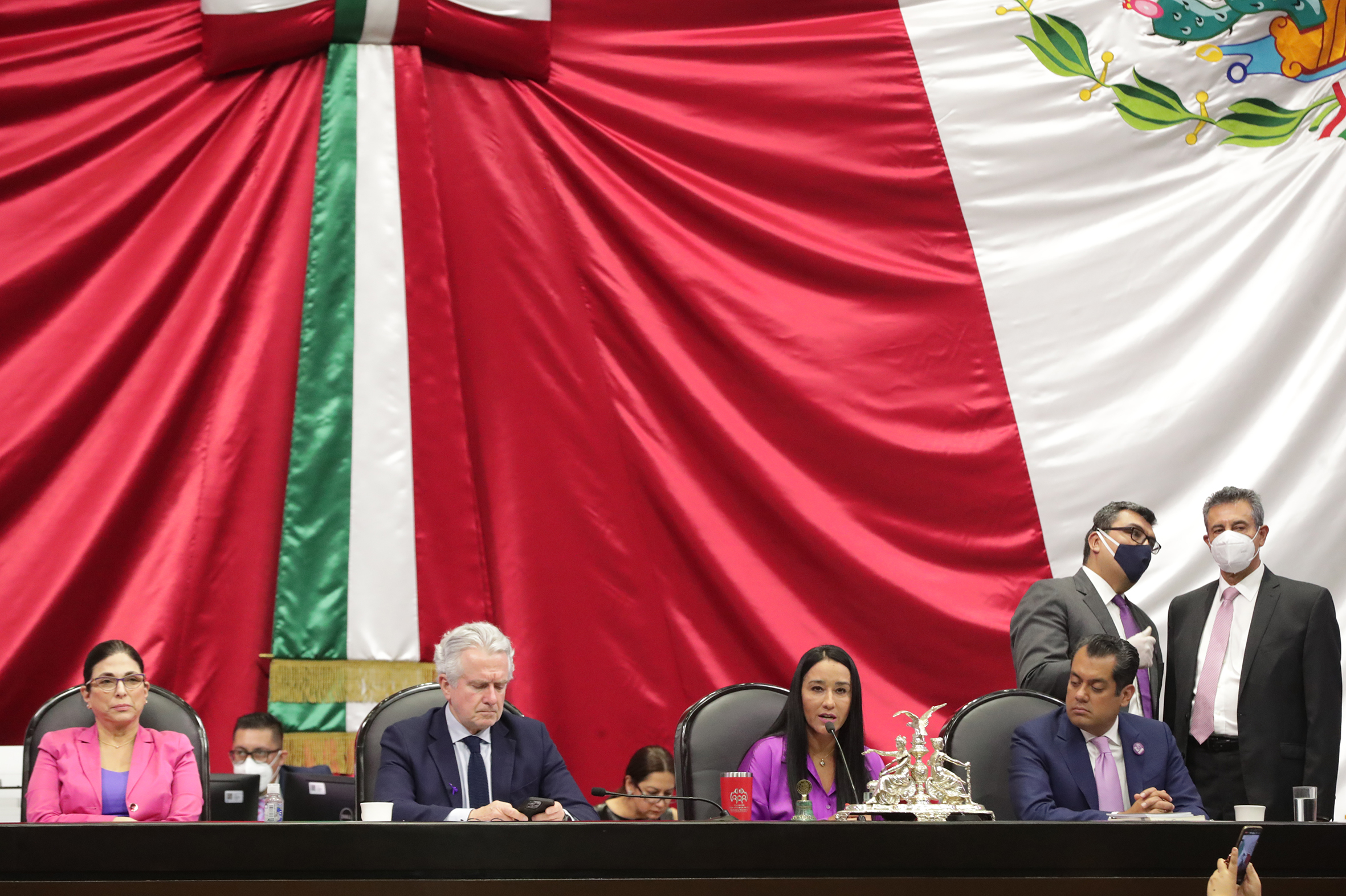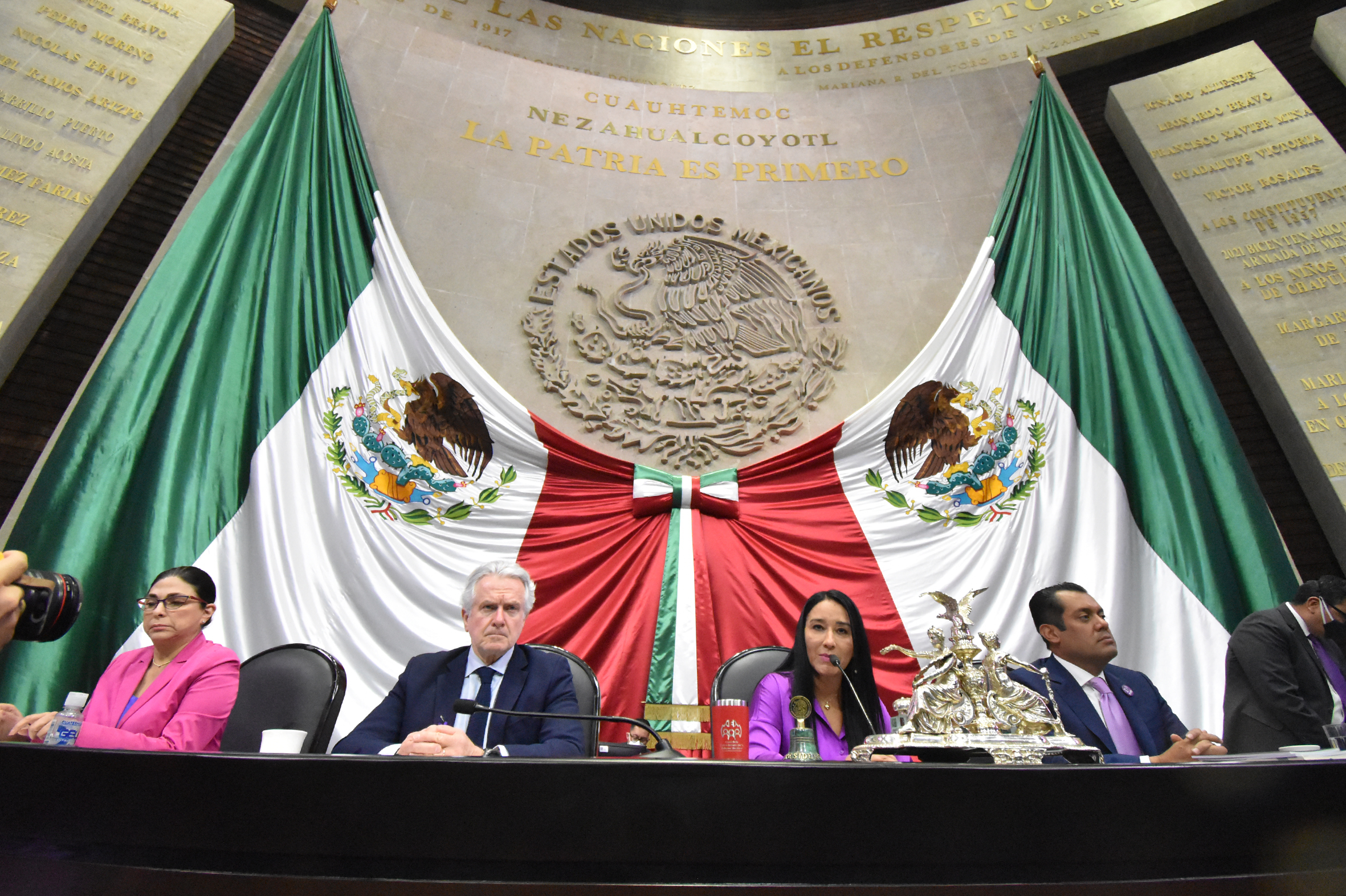Dip. Marcela Guerra, Dip. Santiago Creel, Dip. Karla Yuritzi Almazán y Dip. Presidente Sergio Gutiérrez