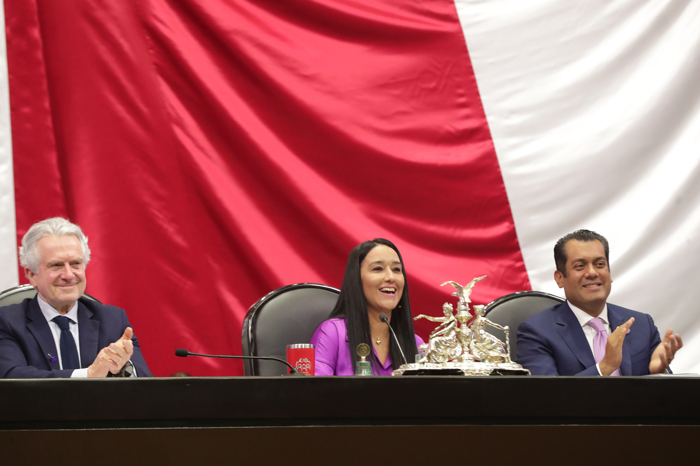 Dip. Santiago Creel, Dip. Karla Almazán y Dip. Presidente Sergio Gutiérrez