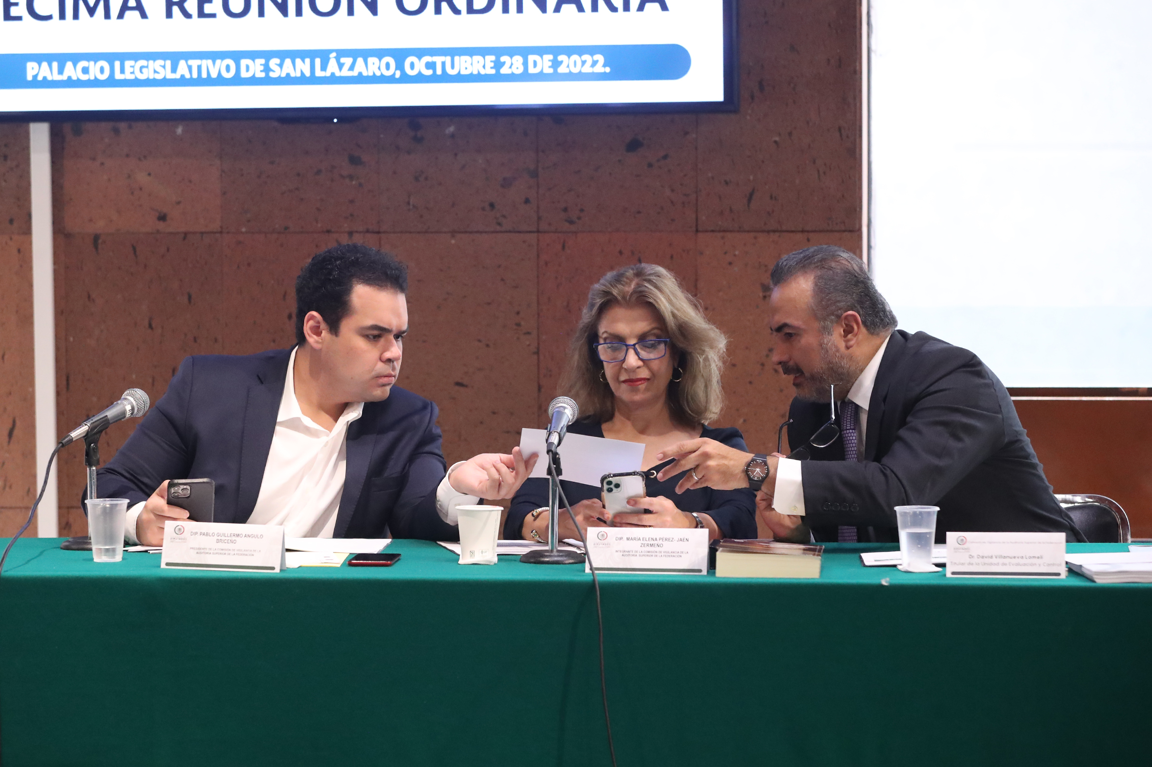 Dip. Pablo Guillermo Angulo, Dip. María Elena Pérez Jaen y Dip. David Villanueva