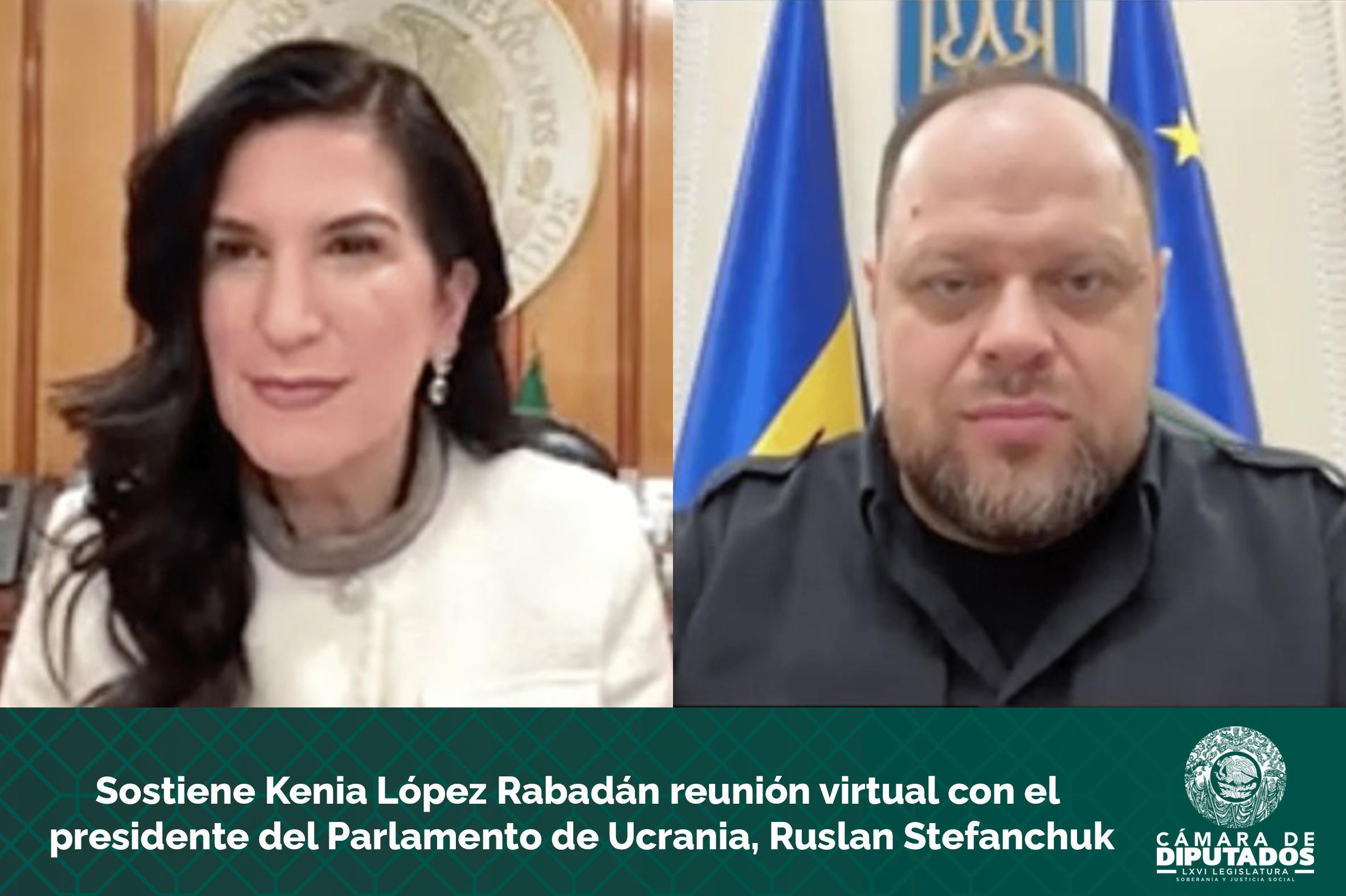 Sostiene Kenia López Rabadán reunión virtual con el presidente del Parlamento de Ucrania, Ruslan Stefanchuk