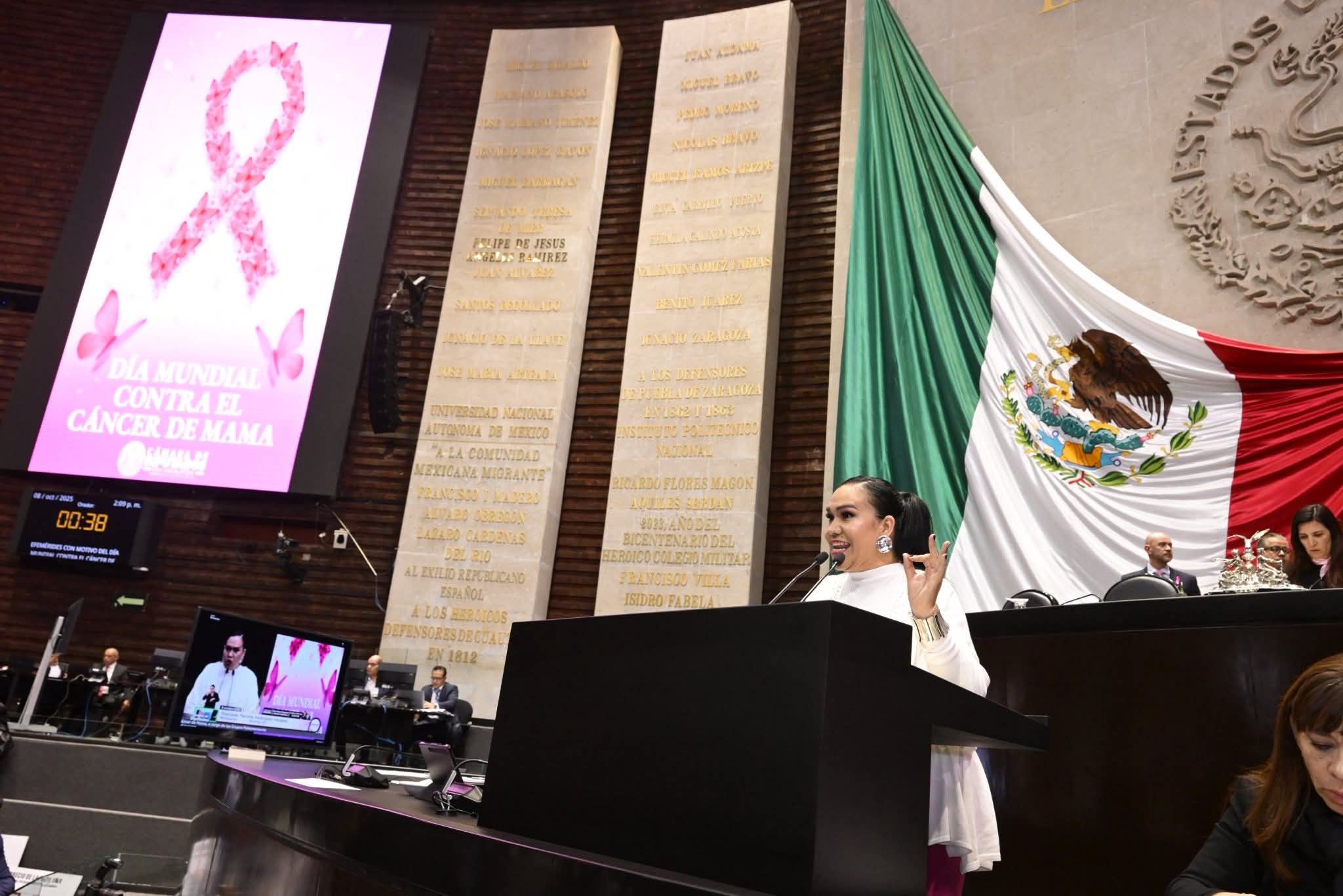 Desde la máxima tribuna, en el marco del apartado de efemérides, señaló que el cáncer de mama es una enfermedad muy agresiva, que ha causado la muerte de un gran número de mujeres. Aunque reconoció que el cáncer es una deformidad celular que también pueden padecer los hombres, destacó el mayor riesgo y número de casos en mujeres, debido a la concentración celular en las mamas.