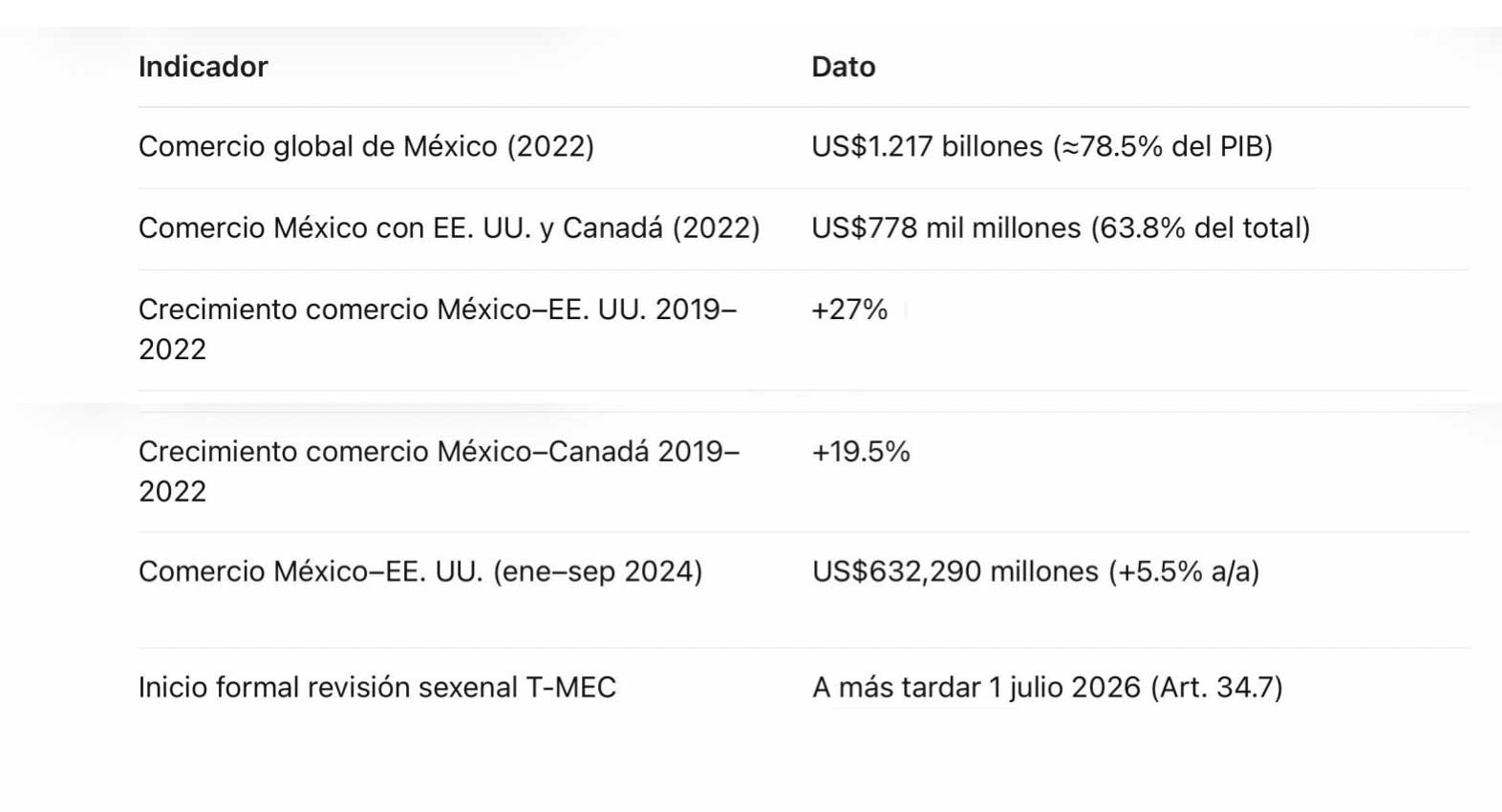 1. El T-MEC no es un tema de coyuntura: es el marco que sostiene inversión, exportaciones y empleo formal.